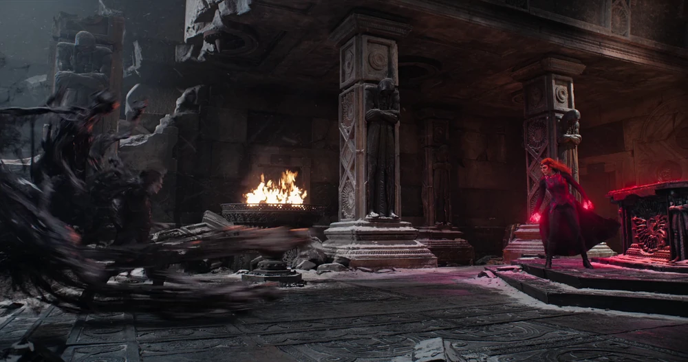 América Chávez luego cerró el portal para regresar a su universo y Maximoff al reflexionar todo lo que ha hecho, voló sobre el altar y se preparó para destruir el Castillo Darkhold. Cuando Chávez y Wong se fueron, Maximoff hizo las paces con Stephen Strange y le dijo que era su trabajo destruir el Darkhold y que nadie volvería a ser tentado por su maldad. Luego procedió a usar sus poderes para destruir el Castillo, rompiendo la estatua de la Bruja Escarlata y destruyendo cada copia del Darkhold en todo el Multiverso. Mientras lo hacía, el castillo comenzó a desmoronarse y dejo que los escombros cayeran sobre Maximoff. Cuando el castillo se derrumbó, un estallido rojo de magia brilló.