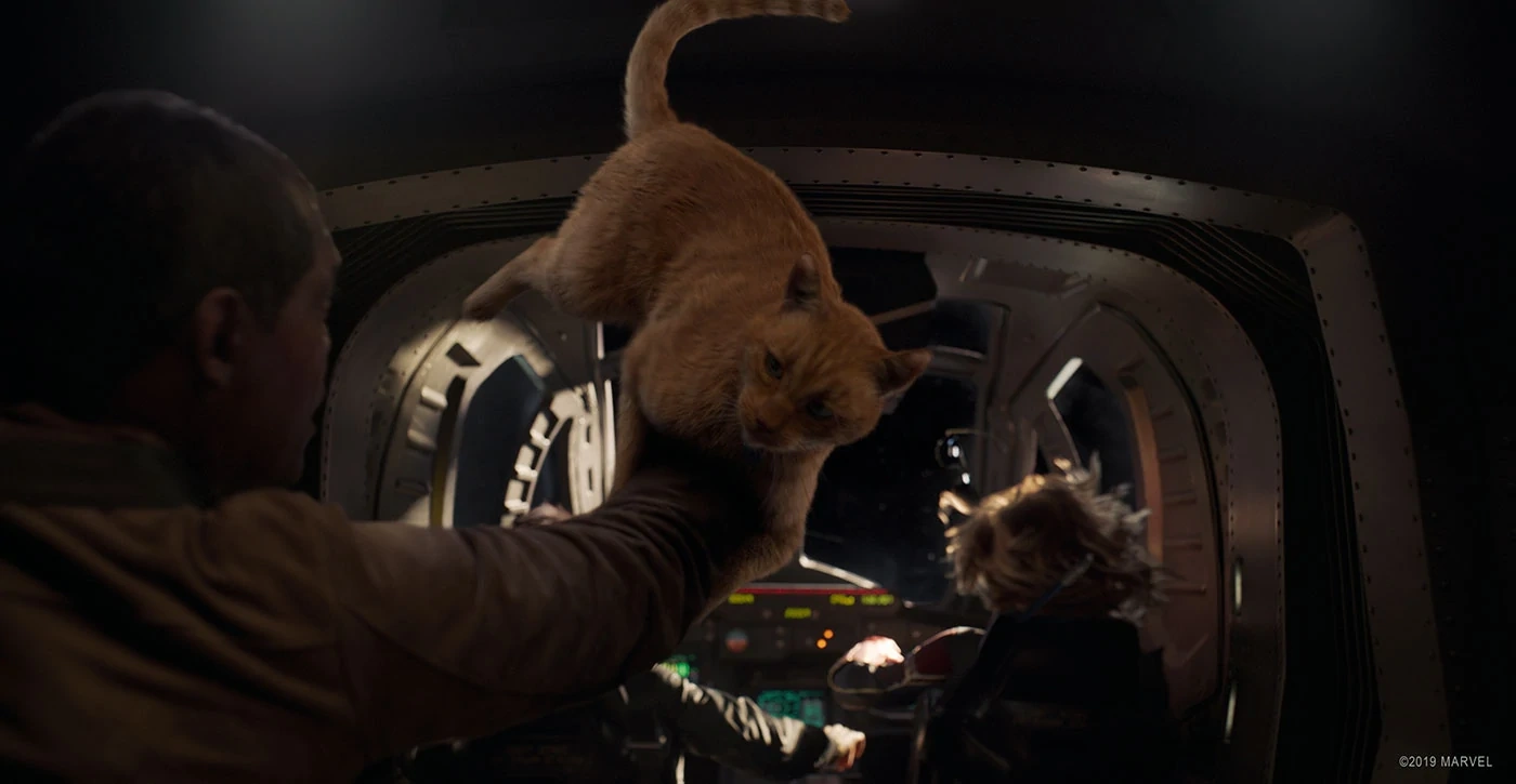 Goose acompaña a Danvers y Fury en el Quadjet.