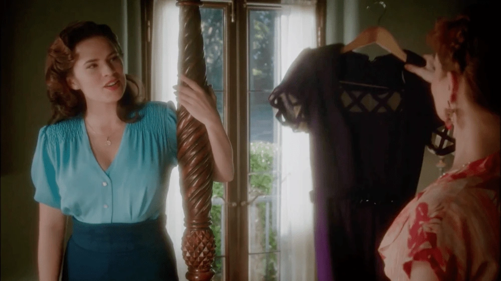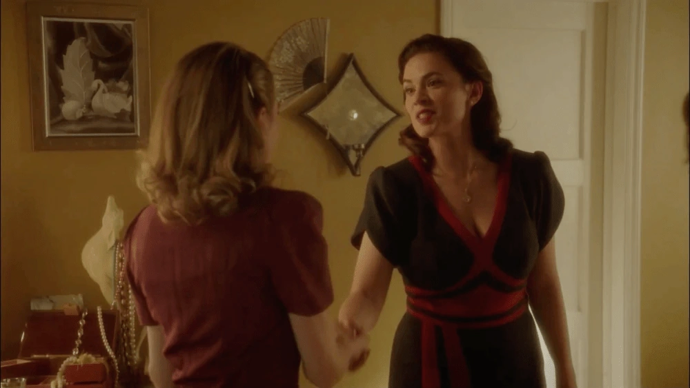 Más tarde, Carter se puso un vestido rojo y se dirigió a una cantina en la que Rogers estaba, dejando a todo el mundo asombrado con su belleza. Acercándose a Rogers y Barnes, Carter comentó lo mucho que le gustaba la música y aún más cuánto quería bailar con su pareja perfecta. Pese a que Barnes la invitó a bailar primero, Carter mantuvo su mirada fija en Rogers. Dicho esto, ambos acordaron reunirse en un club para llevar a cabo su primera cita.