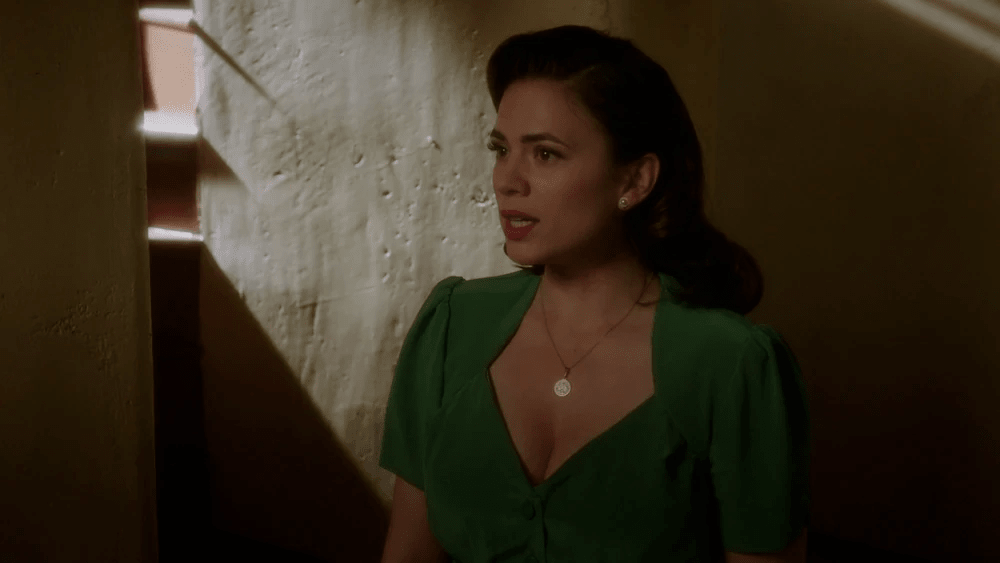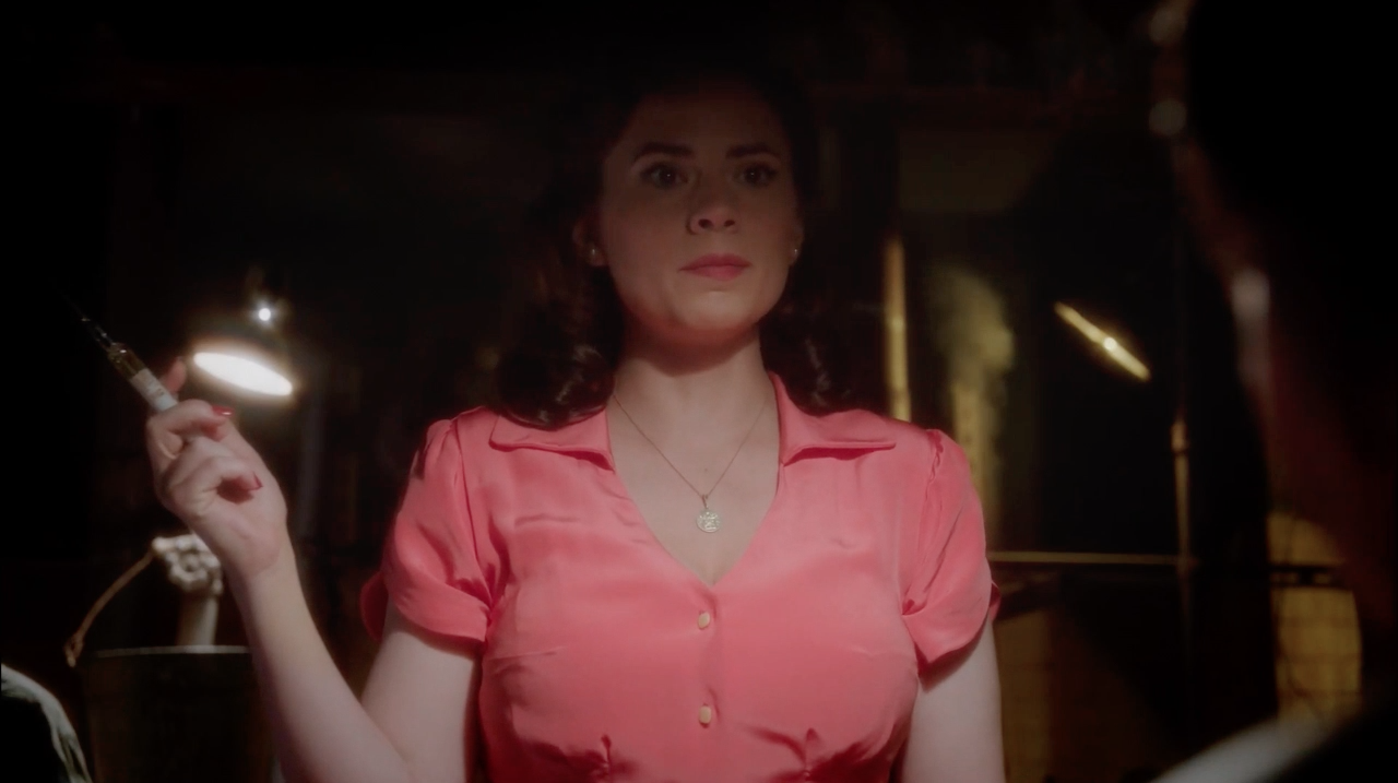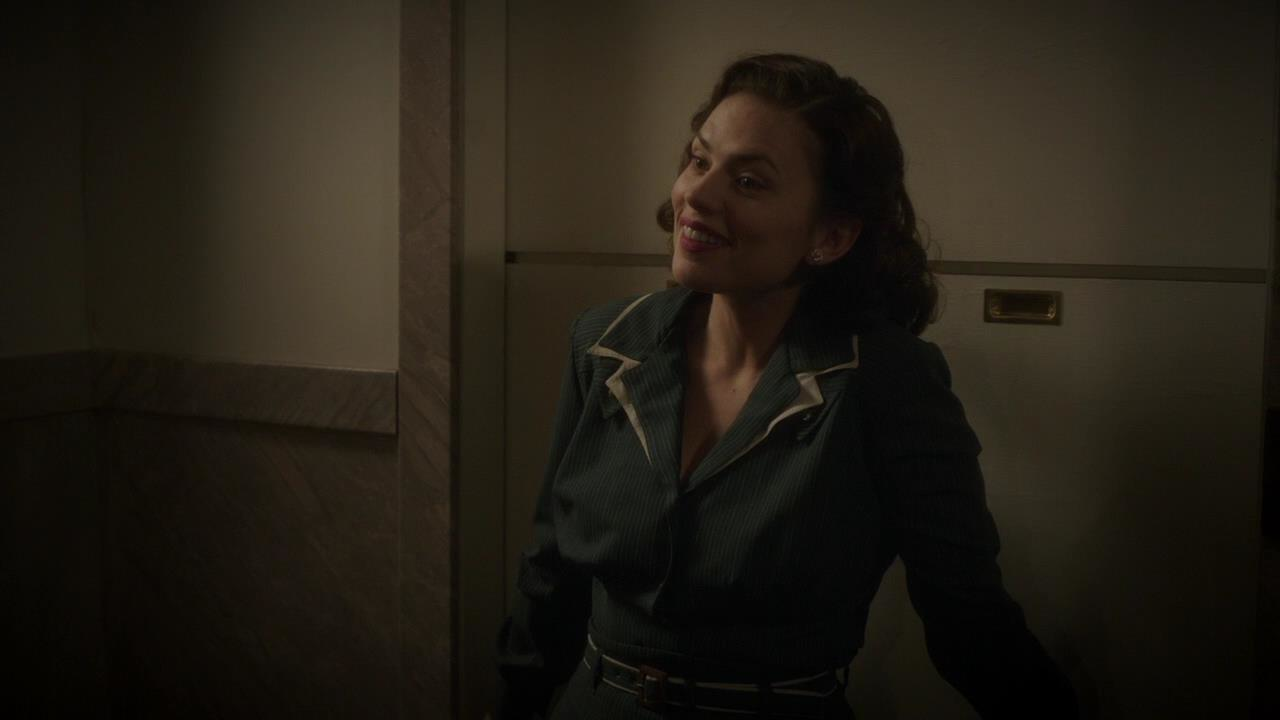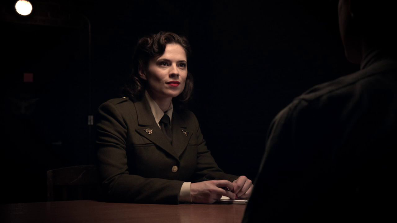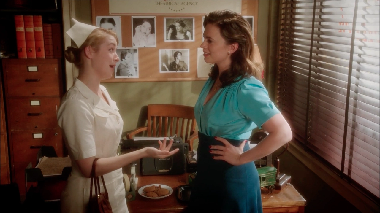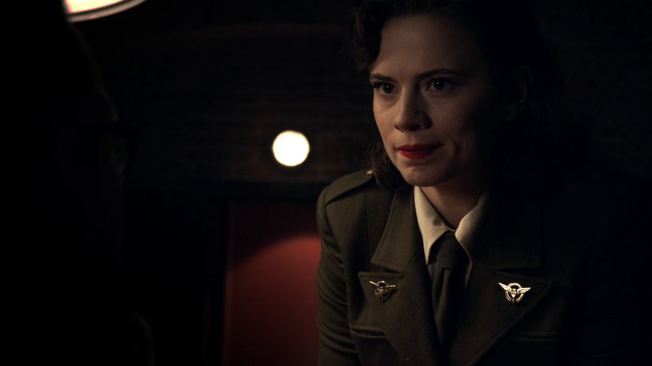 A la mañana siguiente, Carter sorprendió a Rogers besándose con la secretaria Lorraine y evidenció su molestia. Avergonzado, Rogers comenzó a seguirla pidiendo disculpas, pero ella lo ignoró afirmando que era un soldado igual a todos los demás. Antes esa afirmación, Rogers la confrontó preguntándole qué había entre ella y Howard Stark, sin embargo, Carter se enojó más y se retiró. Cuando regresó, Rogers estaba portando un escudo y Carter comprobó su efectividad dándole varios disparos.