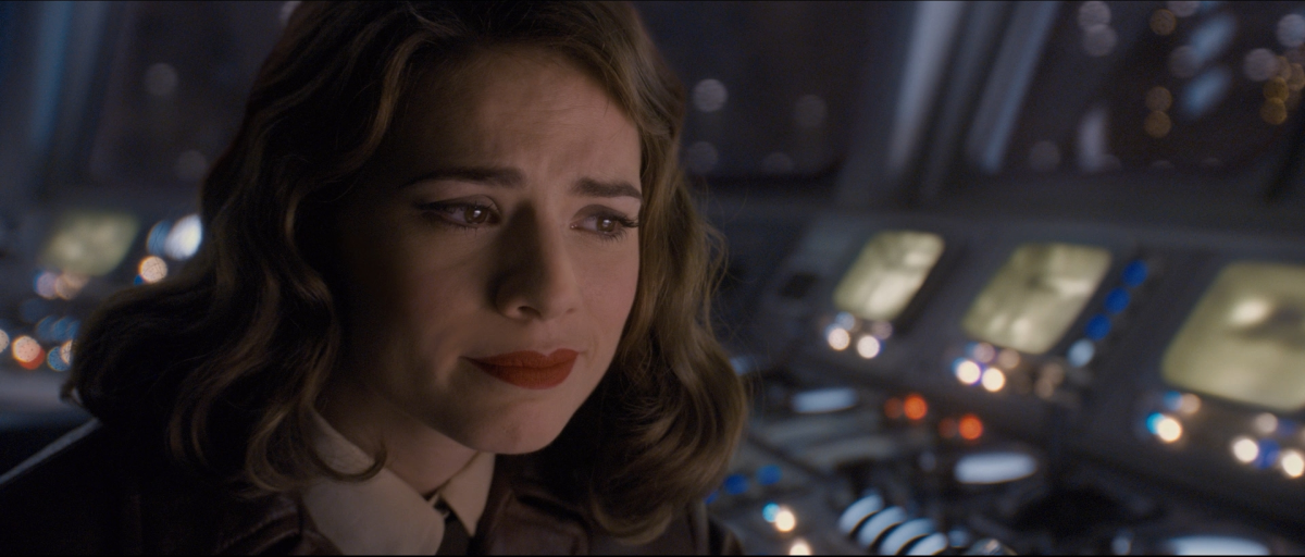 En seguida, Carter contactó a Rogers desde el centro de mando y puesta al tanto sobre la derrota de Schmidt y la existencia de varias bombas atómicas al interior la nave. Aunque Carter le propuso llamar a Howard Stark para buscar una solución, Rogers declaró que estaba decidido a sacrificarse estrellando la Valquiria en el Ártico. Tratando de extender su última charla, Carter le recordó a Rogers la cita pendiente que tenían y advirtió que no llegara tarde. Mientras ambos se despedían, la transmisión se perdió y Carter rompió en llanto al saber que su amado había muerto.[5]