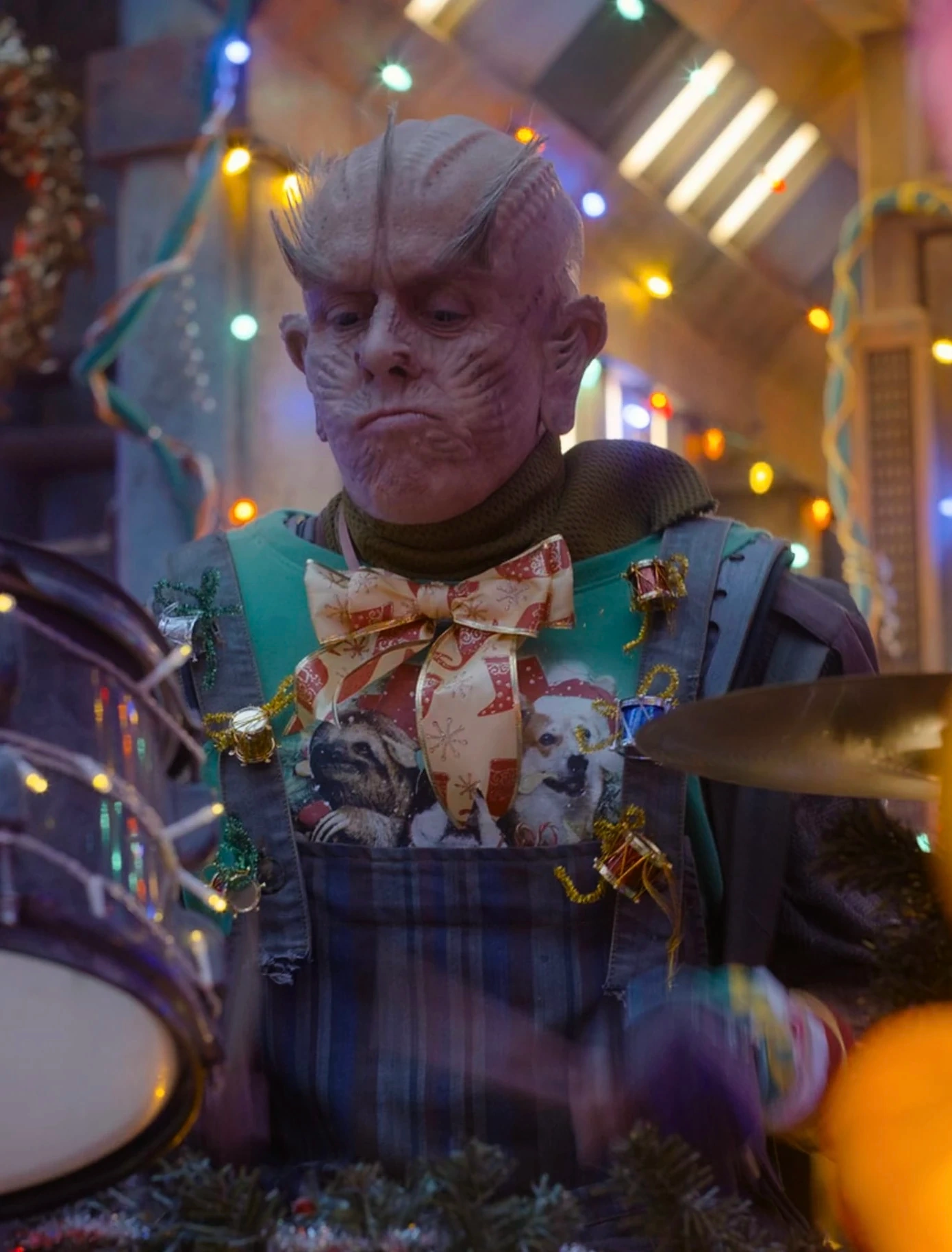 Más tarde, Phloko y la banda conocieron al actor Kevin Bacon, quien decidió quedarse para mostrar el verdadero significado de la Navidad y juntos cantaron Here It Is Christmastime, impresionando a todos los presentes al saber todo sobre la festividad mientras hacían su fiesta navideña con los Guardianes de la Galaxia. Tras la celebración navideña, Phloko y los demás se despidieron de Bacon, antes de que volviera a la Tierra en el Bowie.[1]