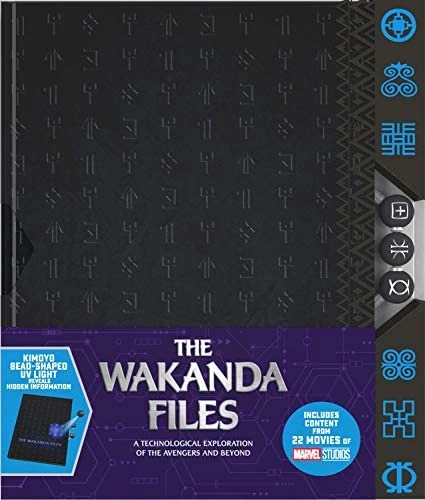 Un libro en el mundo del Universo Cinematográfico de Marvel, The Wakanda Files, compilado a pedido de Shuri, (Black Panther y Avengers: Infinity War) como parte de su búsqueda por mejorar el futuro de las personas, es una colección de documentos, artículos, planos y notas reunidas a lo largo de la historia por los Perros de Guerra de Wakanda. Como guiño a la tecnología Wakandiana, las páginas del libro contienen una capa impresa de tinta ultravioleta con contenido que es visible solo bajo la luz ultravioleta de las Perlas de Kimoyo que vienen como accesorio.