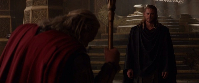 Odín se puso de pie y pronunció un discurso en el que reconoció a Thor como su primogénito, señalando cómo se le confió el poderoso Mjolnir, que sería su compañero como rey. Luego, Odín hizo que Thor jurara dejar de lado toda ambición egoísta para proteger a los Nueve Reinos, así como a Asgard, a lo que Thor juró, y se preparó para convertir a Thor en el próximo Rey de Asgard. Sin embargo, cuando Odín estaba a punto de hacerlo, sintió la presencia de unos Gigantes de Hielo que se habían infiltrado en Asgard y se dirigían a su cámara para robar el Cofre de los Antiguos Inviernos.