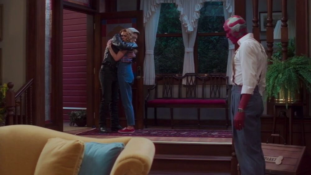 Cuando todo se rebobinó, Visión y Maximoff repitieron la escena del embarazo, donde esta vez si pudieron compartir un beso, antes de que ahora todo se convirtiera en la década de 1970, con todo a color, y el dúo celebró, ya que ahora tendrán un hijo.[3]