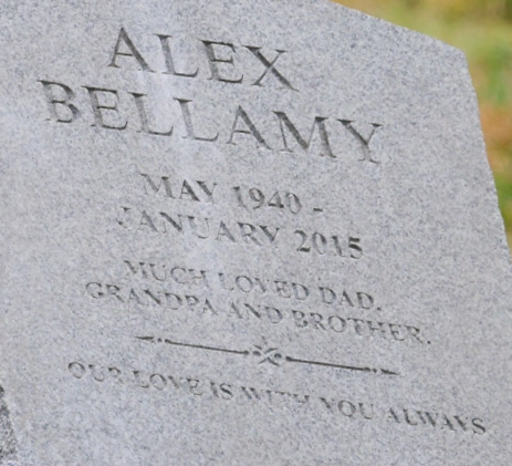 Алекс Беллами был жителем Нью-Йорка, что умер в январе 2015 года. Он был похоронен на кладбище в Нью-Йорке.[1][2]