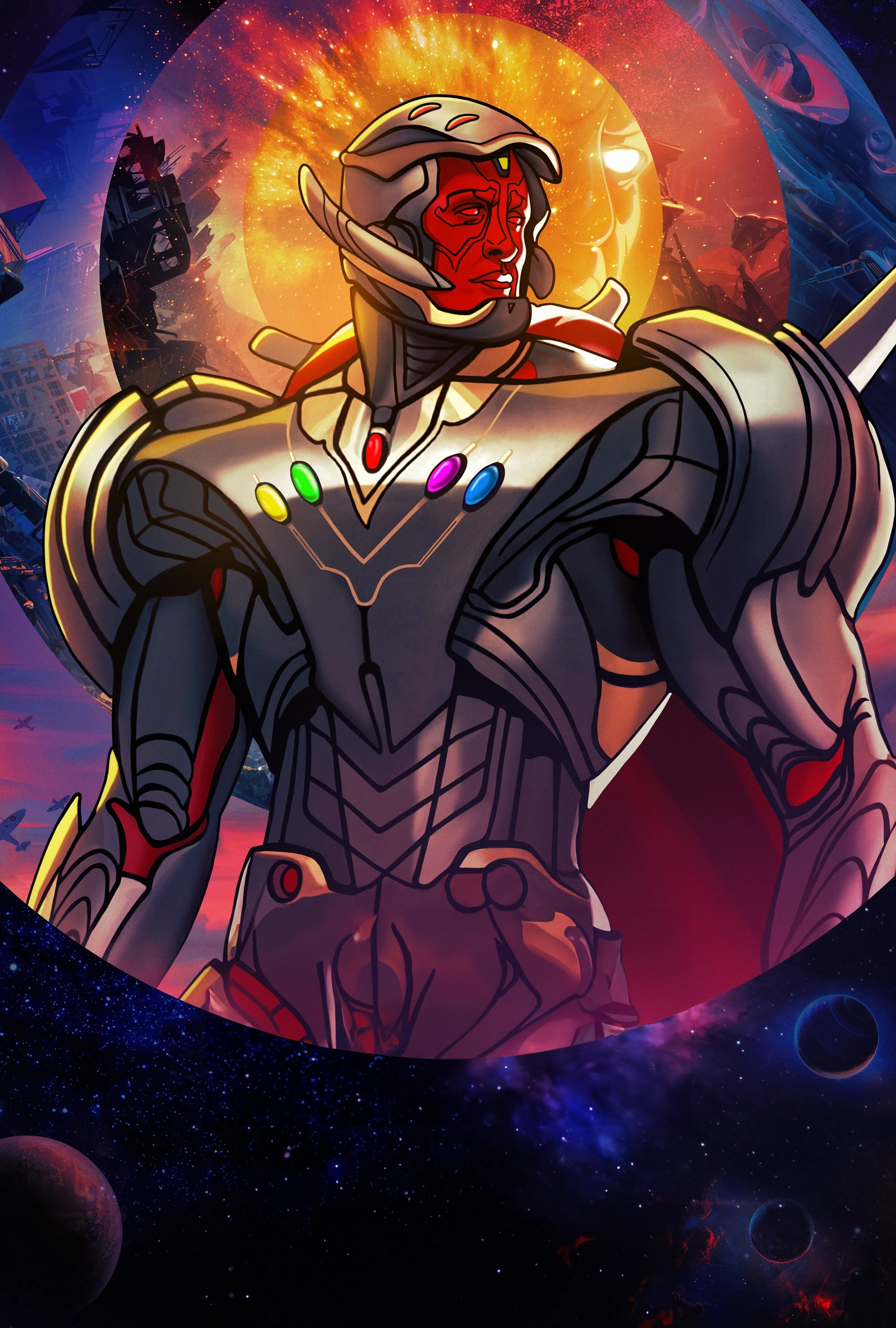 - Физиология робота/синтезоида: Обладая гуманоидным телом робота, Альтрон/Вижн обладает сверхчеловеческой силой, долговечностью, скоростью, выносливостью и многим другим.