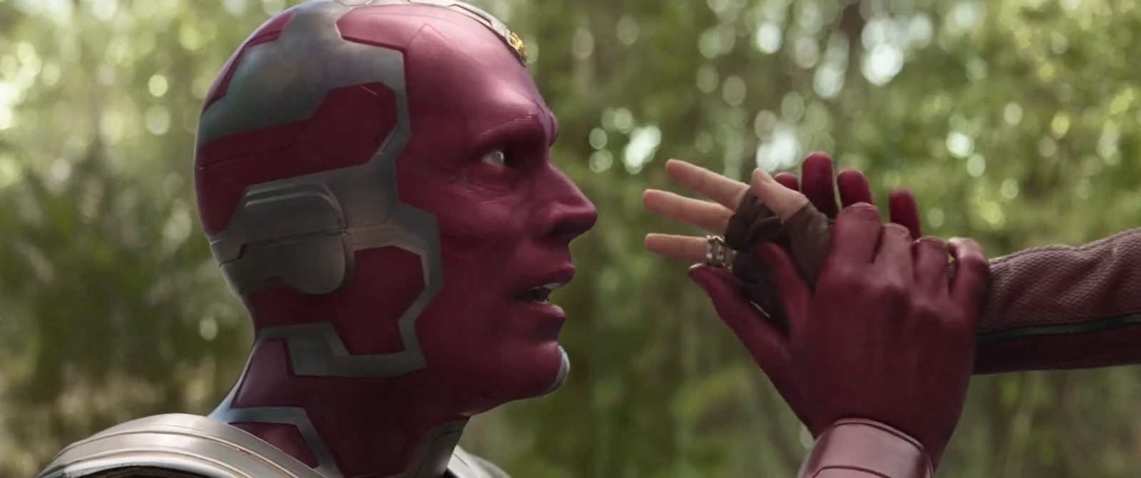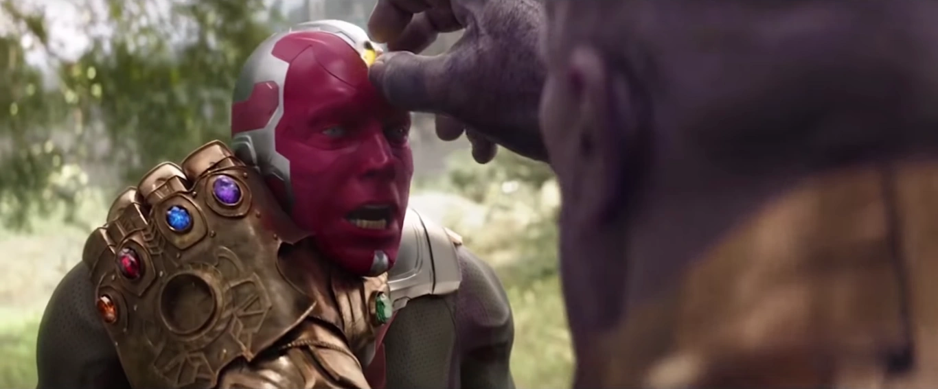 Зная, что Мстители проигрывают Таносу, Вижен просил Ванду уничтожить камень, но она отказалась. Вижен стал вновь просить её, сказав, что если она не уничтожить камень, тогда Танос сможет выиграть и, что это единственный выход. Вижен всё же уговорил Ванду, и она стала использовать свою магию, чтобы уничтожить камень.