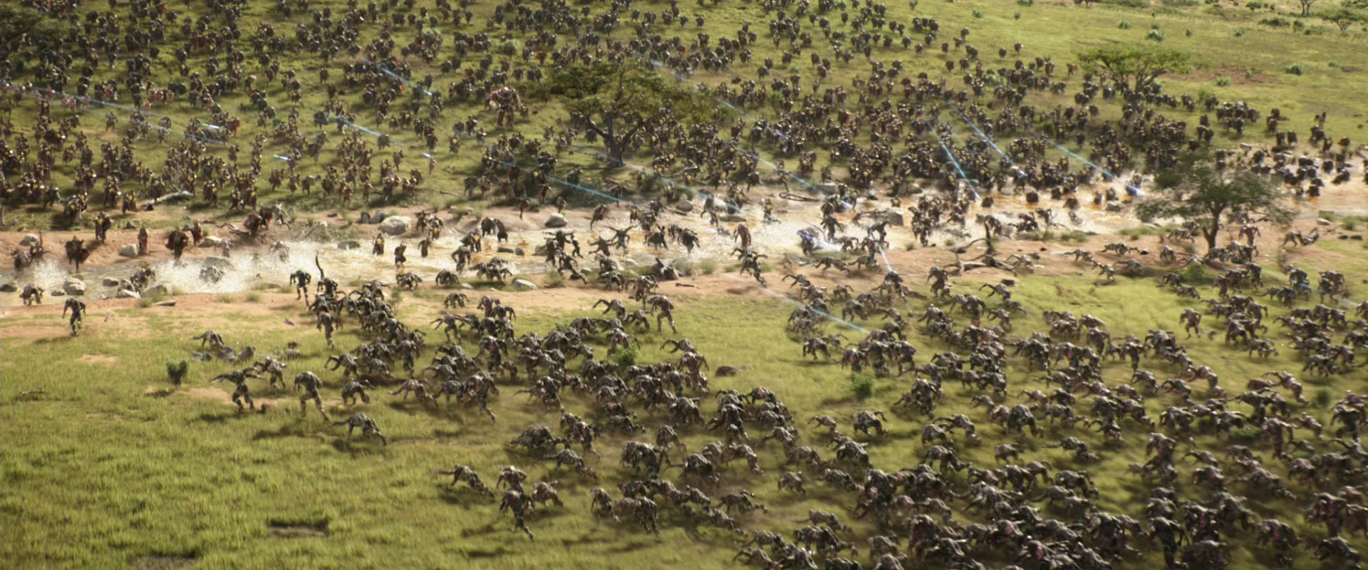По приказу Т'Чаллы, племя границы использовала свои плащи, как защиту, а Королевская стража Ваканды стреляла в Аутрайдеров из своих копьев, к ним присоединились Баки Барнс и Брюс Беннер с помощью своей брони. Сокол и Воитель могли летать, и поэтому они стреляли и бомбили Аутрайдеров сверху. Беннер понял, что таким образом, Аутрайдеры смогут добраться до лаборатории Шури и смогут забрать камень разума, тогда Т'Чалла приказал убрать барьер, чтобы Аутрайдеры бежали только на войско. Тогда Аутрайдеры побежал к героям.