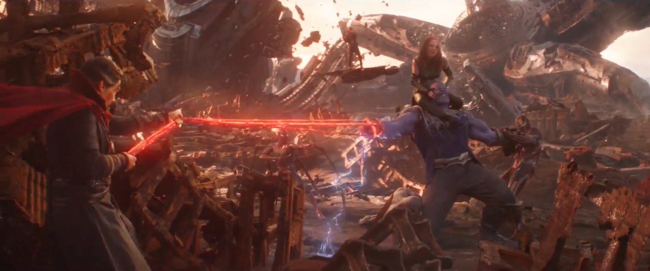 Когда Стивен Стрэндж и Вонг хотели покинуть Нью-Йоркский Санктум Санкторум, но в него упал Брюс Беннер после нападения на асгардцев, когда Хеймдалль отправил его по Радужному мосту на Землю. Беннер сказал, что Танос идёт, Стрэндж спросил кто это, и Беннер рассказал ему про него. После Стрэндж нанял Тони Старка, когда он гулял по парку с Пеппер Поттс.