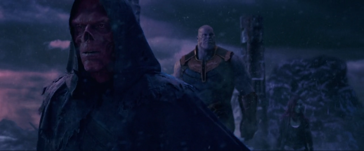 Танос на некоторое время потерял сознание, он попал в странный оранжевый мир, где ничего не было. После он увидел арку из Зен-Хобери, и там увидел свою маленькую приёмную дочь Гамору. Гамора сказала Таносу, что он все собрал, Танос ответил на этот вопрос положительно. Тогда Гамора сказала, какой ценной, Танос сказал, что ценной всего, а после он исчез из этого мира и вернулся в настоящий.