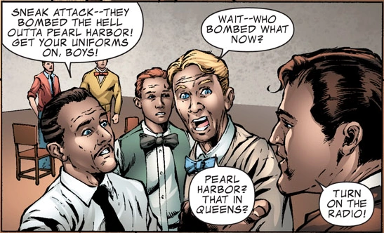 Поскольку война шла в основном в Европе, США единственные, кто мог противостоять японской агрессии. Япония планировала захват Китая и европейских колониальных владений на Дальнем Востоке. 7 декабря 1941 года 360 японских самолетов атаковали крупнейшие американские авиабазы. Атака на Перл-Харбор на Гавайях застала американцев врасплох и унесла жизни более 2300 военнослужащих.[2] Это нападение послужило объединению общественного мнения США в пользу войны с Японией. 8 декабря Конгресс объявляет эту войну. Германия и другие державы Оси в ответ немедленно объявили войну Соединенным Штатам Америки. Президент Франклин Д. Рузвельт заявил, что США построят пятьдесят тысяч самолетов для борьбы с армиями Хирохито и Адольфа Гитлера. Говард Старк поддержал американские военные усилия, и собрал сто тысяч самолетов для военно-воздушных сил Соединенных Штатов.[4]