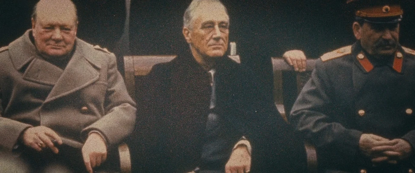 Уинстон Черчилль, Франклин Д. Рузвельт и Иосиф Сталин на Ялтинской конференции.