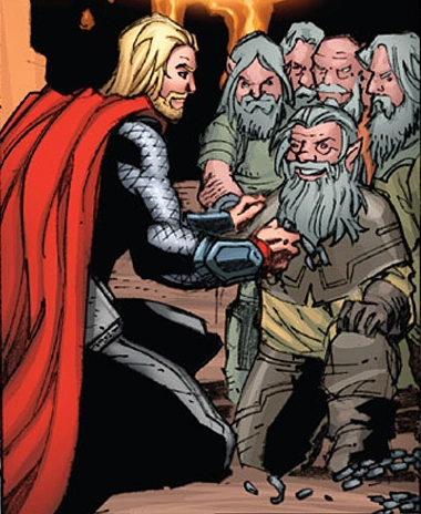 Гномы (англ. Dwarves) - древняя раса опытных кузнецов, которые родом из царства Нидавеллир, которым управляет король Эйтри. Они близкие союзники асгардов и после того, как Один попросил их создать для него оружие - молот Мьёльнир, они сделали его для Одина.