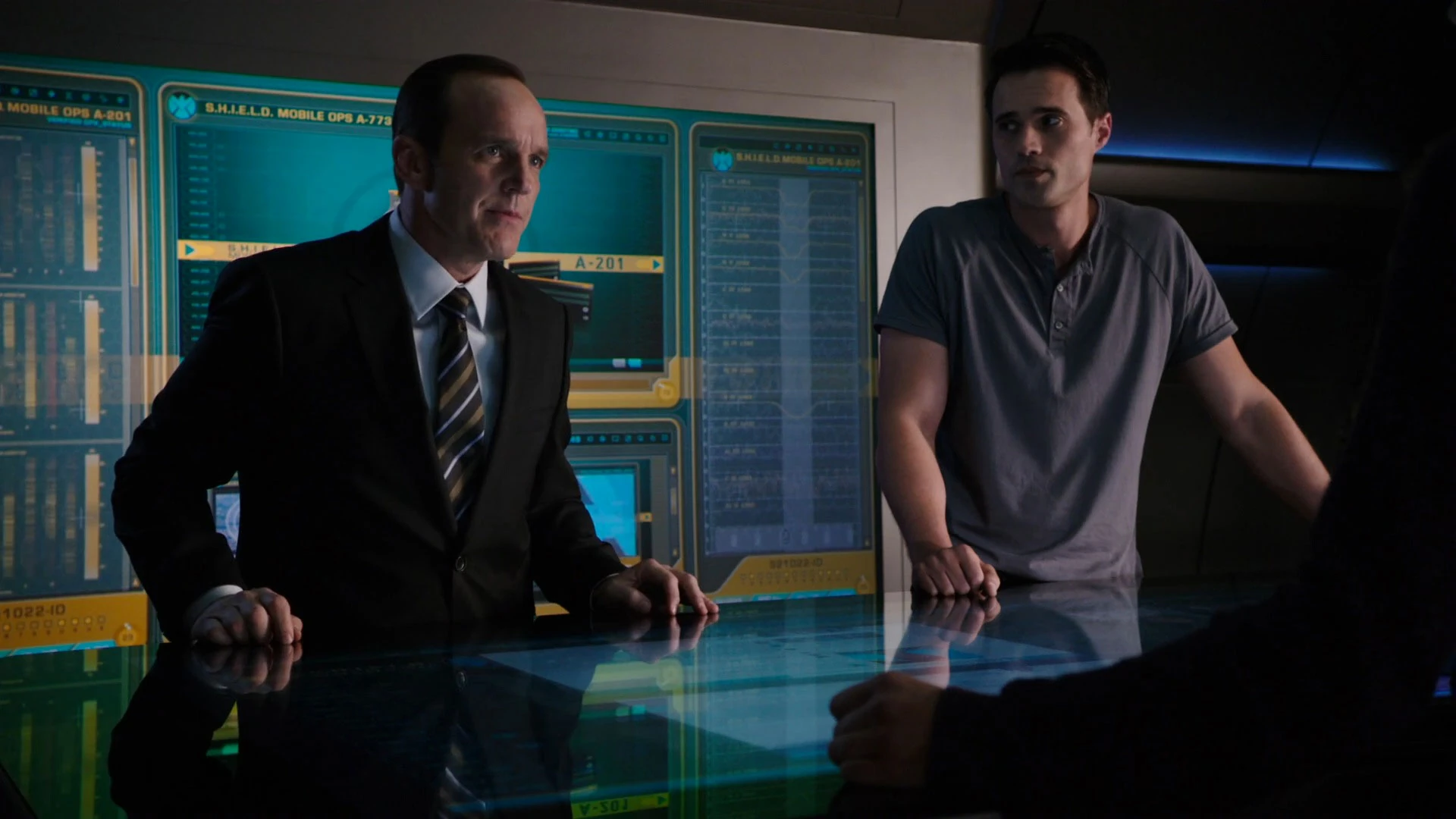 При этом Уорд обращает внимание что люди Рейес не пили алкоголь, что собирались и понимает - они что-то замышляют. Взяв у Скай бутылку и используя её как оружие, Грант нападает на предателей и успешно одолевает, но не всех. Команду заставляет сдаться то, что один из людей Рейес Вилса взял Фитца и Симмонс в заложники. Всех кроме Колсона помещают на грузовой трап, угрожая открыть его в случае если Колсон откажется подтвердить смену курса.