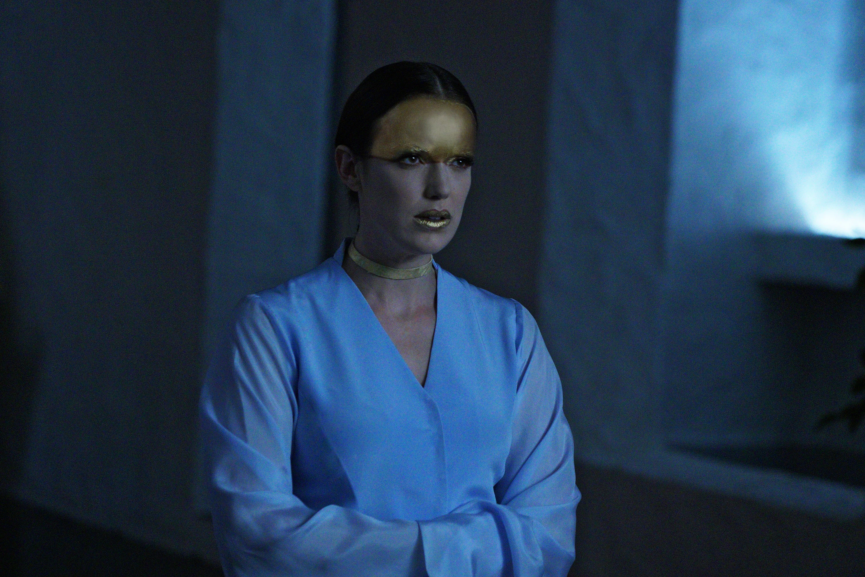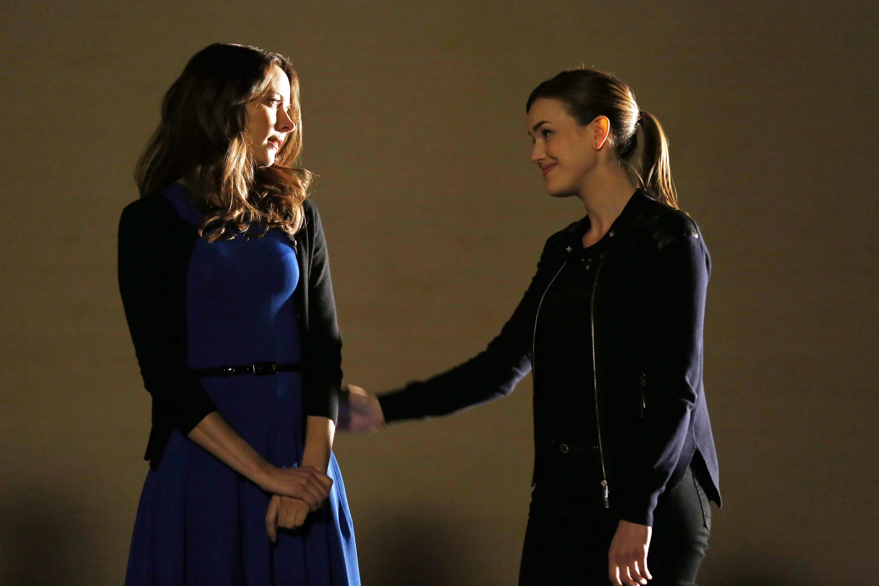 - Меган Хармон была дублером Элизабет Хенстридж в роли Джеммы Симмонс на фотографии.