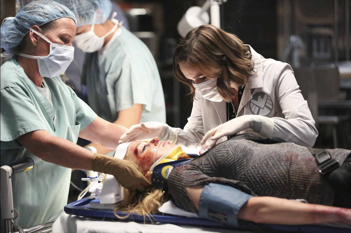 Симмонс проводит тесты Колсону и собирается взять у него анализ крови, на что тот отвечает что не любит уколы. Затем Симмонс подтверждает что Колсон здоров как бык. Затем она, Фитц и Скай насмехаются над Уордом. После команда отправляется на место обнаружения летающего трупа, где Симмонс и Фитц пытаются понять причину странного происшествия. Позже выясняется что всему виной шлем читаури, который забрали себе после битвы за Нью-Йорк группа пожарных.