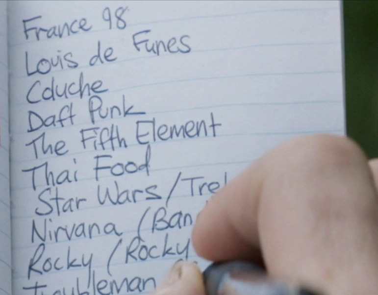 - "Тайская еда, Звёздные войны/путь, Nirvana (Группа), Рокки (Рокки 2?) и Горе-человек (Саундтрек)" присутствуют во всех версиях списка, предположительно, из-за того, что Стив Роджерс двигал рукой по ним, что затрудняло редактирование монтажа.