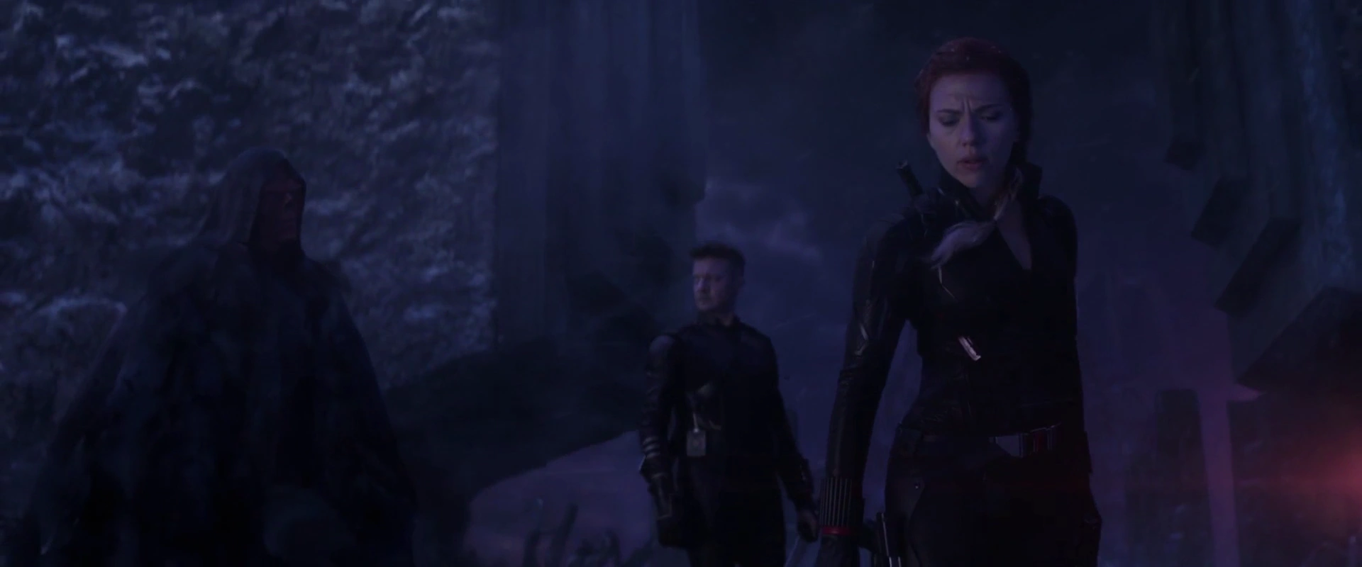 Затем Иоганн приводит Бартона и Романофф к обрыву в храме на скале и объясняет что для получения камня души необходимо пожертвовать кем-то, кого ты любишь, отмечая при этом что этот обмен необратим. Клинт и Наташа стали обдумывать как поступить. В результате каждый решил принести в жертву себя. Из-за этого возникает короткая стычка.