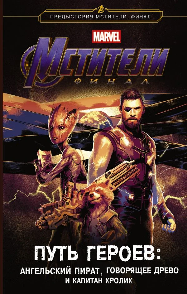 Мстители: Финал. Путь героев: Ангельский пират, говорящее древо и капитан Кролик (англ. Avengers: Endgame: The Pirate Angel, The Talking Tree, and Captain Rabbit) - книга, основанная на фильме Мстители: Война бесконечности, в которой рассказываются события до фильма Мстители: Финал.