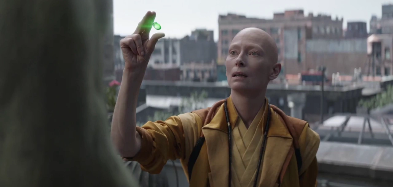 Но потом Халк говорит Древней, что Стрэндж отдал камень,[1] когда хотел спасти жизнь Железного человека от рук Таноса.[2] Тогда Древняя была удивлена этому факту и только после этого, она решается отдать камень Халку и пожелала удачи по спасению мира.[1]