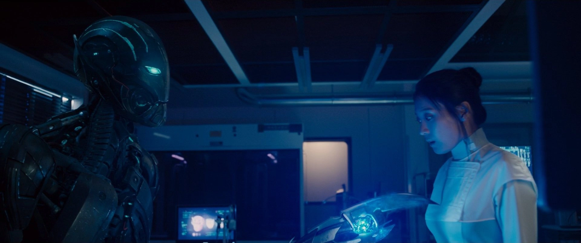 Альтрон использовал силу скипетра, чтобы поработить Хелен Чо, чтобы она помогла ему создать самое совершенное тело, используя регенератор и запасы вибраниума. Позже Альтрон сломал голубой камень в скипетре, вытащив из него камень разума, чтобы он смог использовать его силу для создания нового тела. Используя вибраниум и живую ткань, камень разума создал Вижена.[6]