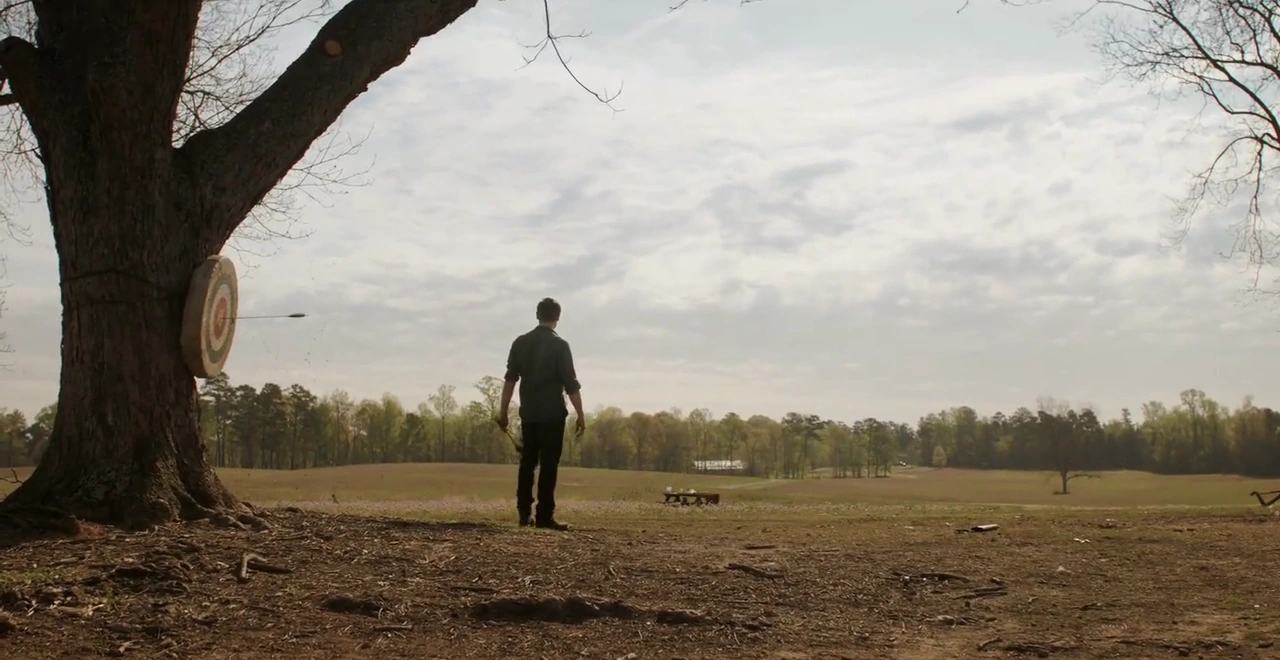 Клинт Бартон учит Лайлу стрельбе из лука.