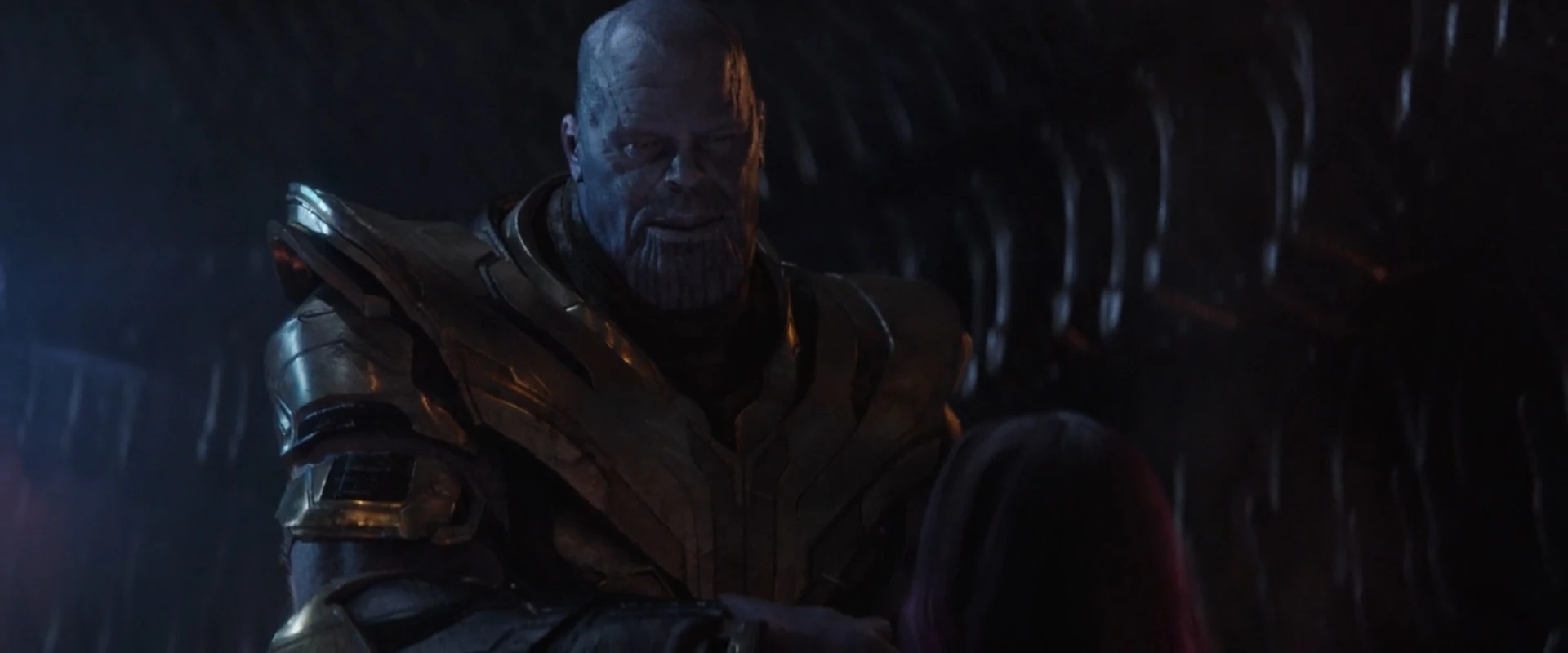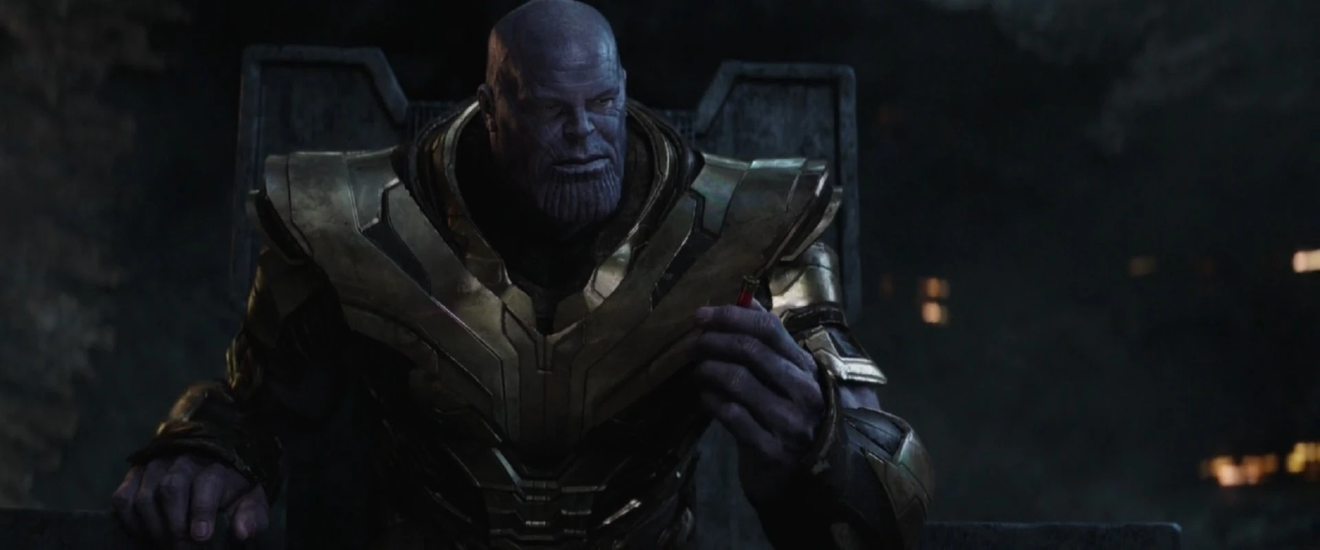 Прождав некоторое время и посидев на куче щебня, к Таносу вскоре приходят Капитан Америка, Железный человек и Тор, которые сумели выйди из базы. Танос стал говорить им, что они не смогли смирится с поражением, и всё же они в итоге вернулись к нему. Также он сообщает им, что всегда хотел убить половину вселенной, чтобы другая половина смогла жить без проблем перенаселения.