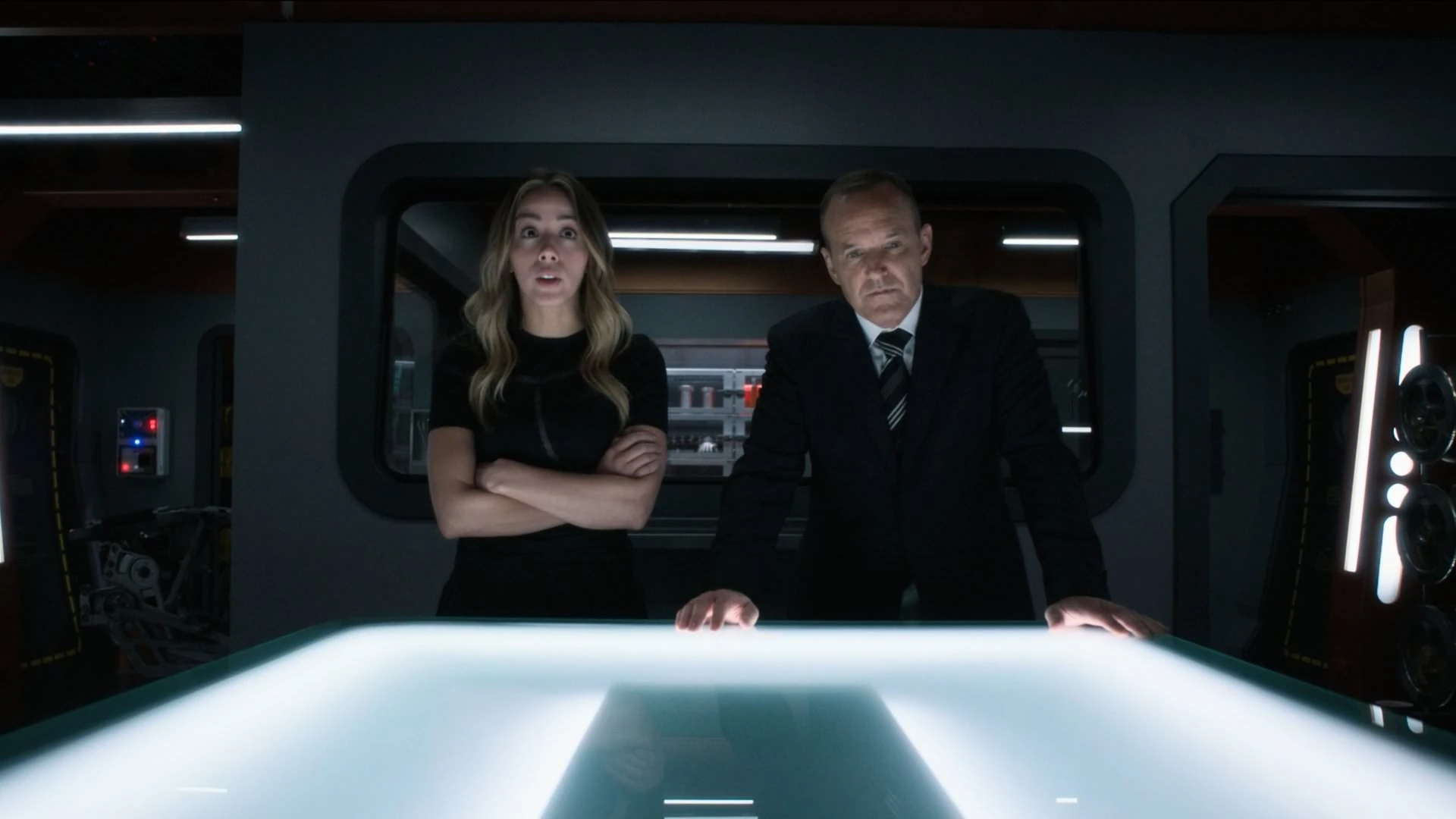 - Маяк: Пытаясь сбежать с маяка, Колсон и Мелинда Мэй были схвачены агентами Щ.И.Т.а из 70-ых. Рик Стоунер запер их в специальной комнате, после чего они сбежали и помогли генералу одолеть хроникомов.