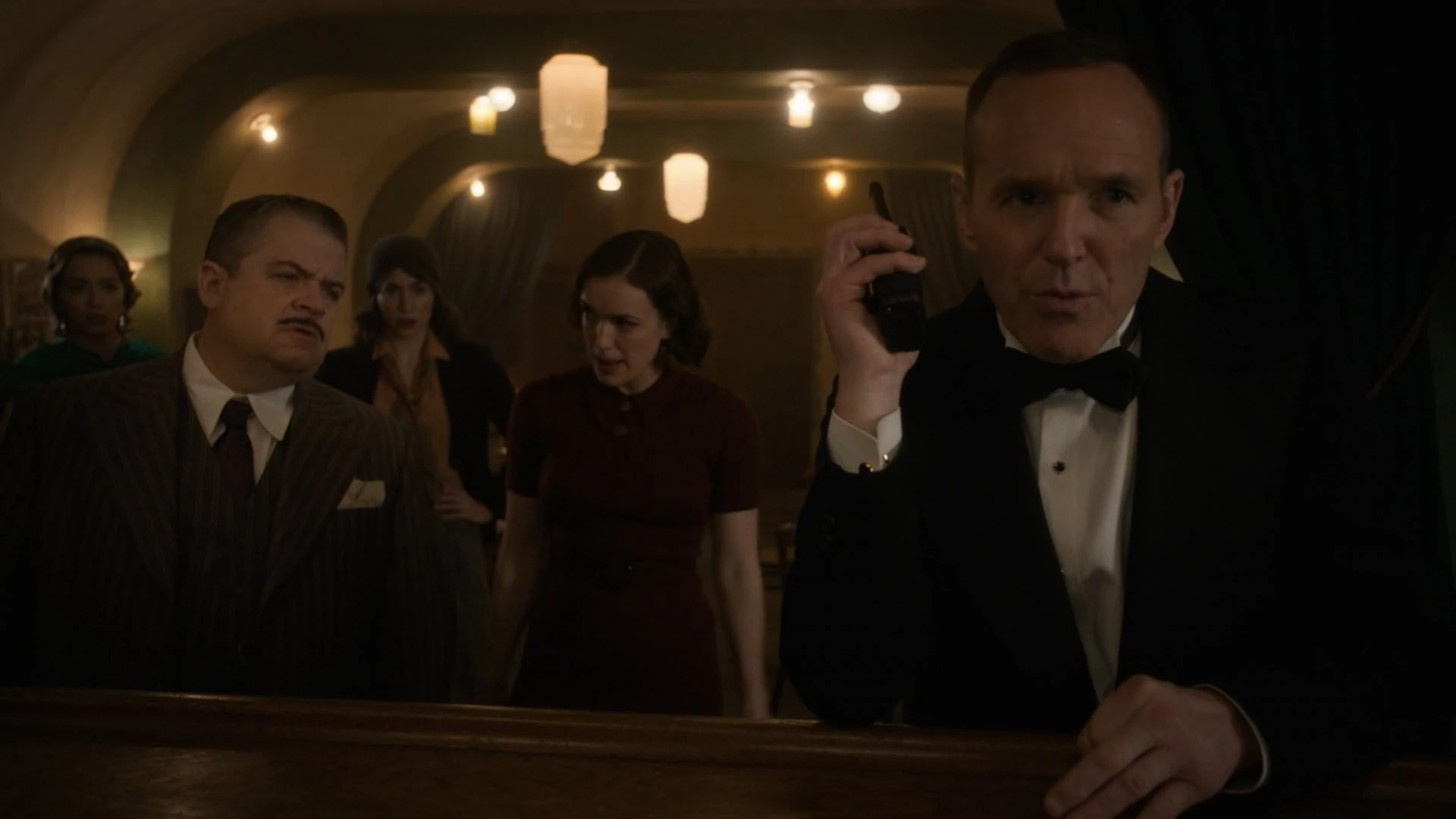 Тогда Кёниг рассказывает что должен поставить выпивку на вечеринку губернатора из Олбани для чего и пытался подкупить полицию. Колсон понимает что речь идёт о Франклине Рузвельте. Ответить Кёниг не успевает поскольку его отвлекает разбивший бутылку Фредди. Колсон объясняет что Рузвельт, став президентов, сформирует СНР, в последствии Щ.И.Т. И если хроникомы его убьют, то не будет и Щ.И.Т.а. Зная что оружие там будет только у прикинувшимися копами, охотников, агенты понимают что необходимо вмешаться.[2]