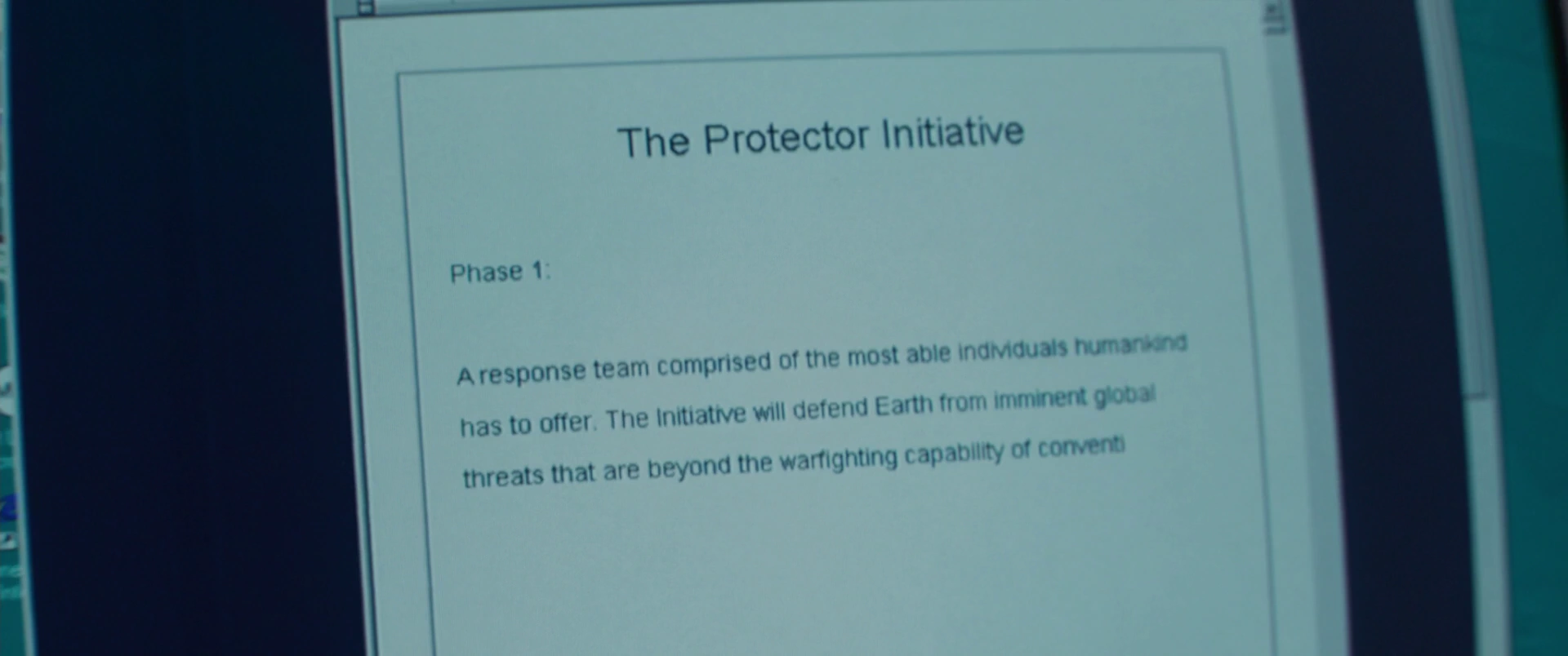 - Фил Колсон приходит в периферийное отделение Щ.И.Т.а к Нику Фьюри, чтобы показать ему множество протезов для его раненного глаза. Затем Колсон спрашивает у него, что действительно Фьюри потерял глаз после того, как его пытали воины кри. Тогда Фьюри сказал ему, что не даёт комментариев на эту тему. Потом Колсон сказал, что он не нашёл Тессеракт, но Фьюри сказал, что скоро он найдётся, посмотрев на Гусю, которая сидела в офисе, внутри которой и находился Тессеракт. После Колсон говорит, что Земля может быть в опасности во время отсутствия Кэрол Денверс, если прибудет инопланетная угроза. Тогда Фьюри решает создать инициативу в которой входили бы различные супергерои, такие как Денверс.[4]