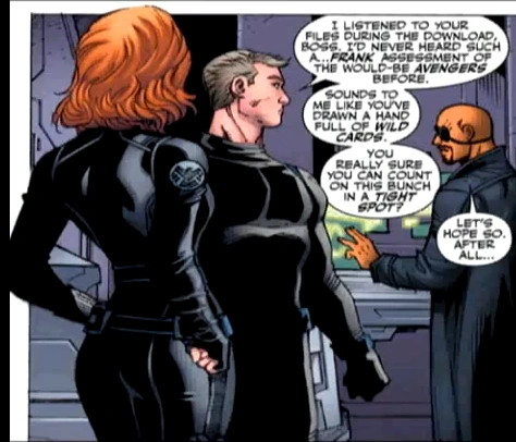 - В качестве тренировочного задания Соколиный глаз, находясь под маскировкой, проникает на Хеликэрриер, чтобы обмануть Чёрную вдову, и заставить её думать, что он пытается украсть информацию об инициативе «Мстители». После упражнения Ник Фьюри сообщает им, что инициатива будет активирована, когда мир будет нуждаться в команде больше всего.[4]