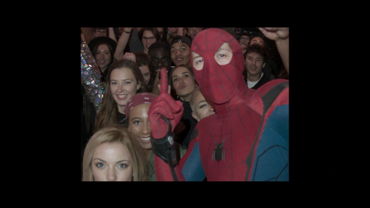 Питер Паркер снимает себя, когда он пробирается из своего отеля в Берлин, чтобы присоединиться к вечеринке в его костюме «Человек-паук».[2]