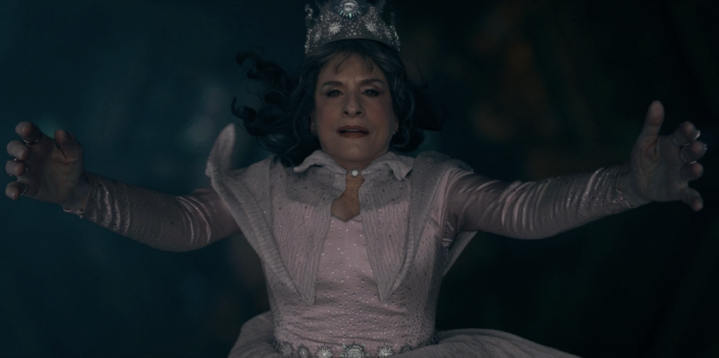 Maximoff and Harkness enter the castle and find themselves dressed as Maleficent and the Wicked Witch of the West, respectively. Maximoff expresses doubt at Harkness' claim about the Wicked Witch being based on her and admires his own look.[29][50]