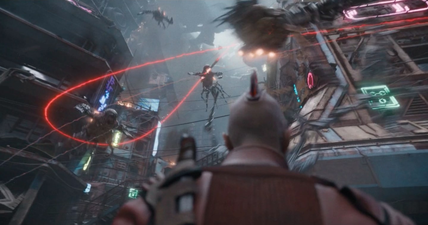 On Knowhere, Rocket melancholically listens to "Creep" by Radiohead on Peter Quill's Zune as he walks through the city. Mantis dances to the song, and asks Drax to join her, but he declines. Rocket walks past Nebula and Groot as they hang up a sign and Kraglin Obfonteri and Cosmo as they fight. Rocket walks into the dining hall to find a drunken Peter Quill, who berates Rocket for using his Zune without permission until he passes out. Nebula picks Quill up, and is joined by the rest of the Guardians of the Galaxy as she takes Quill to his bed.[14][16]
