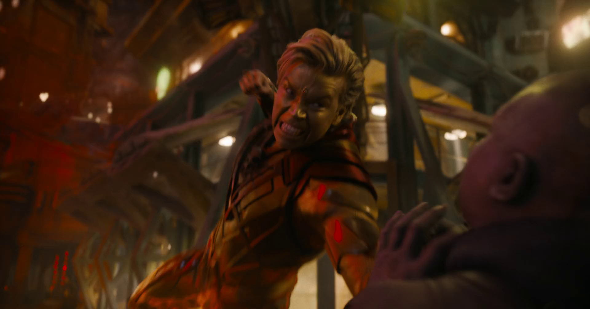 Scott Lang fights Kang to stop him from returning to Earth. Kang says that Lang should have looked the other way and the two continue to fight. Kang declares that Lang could have gone home, but Lang continues fighting. Kang forces him against the core, but Lang says that he does not need to win, but rather that both need to lose. He uses Pym Particles to close the portal.[10][12]