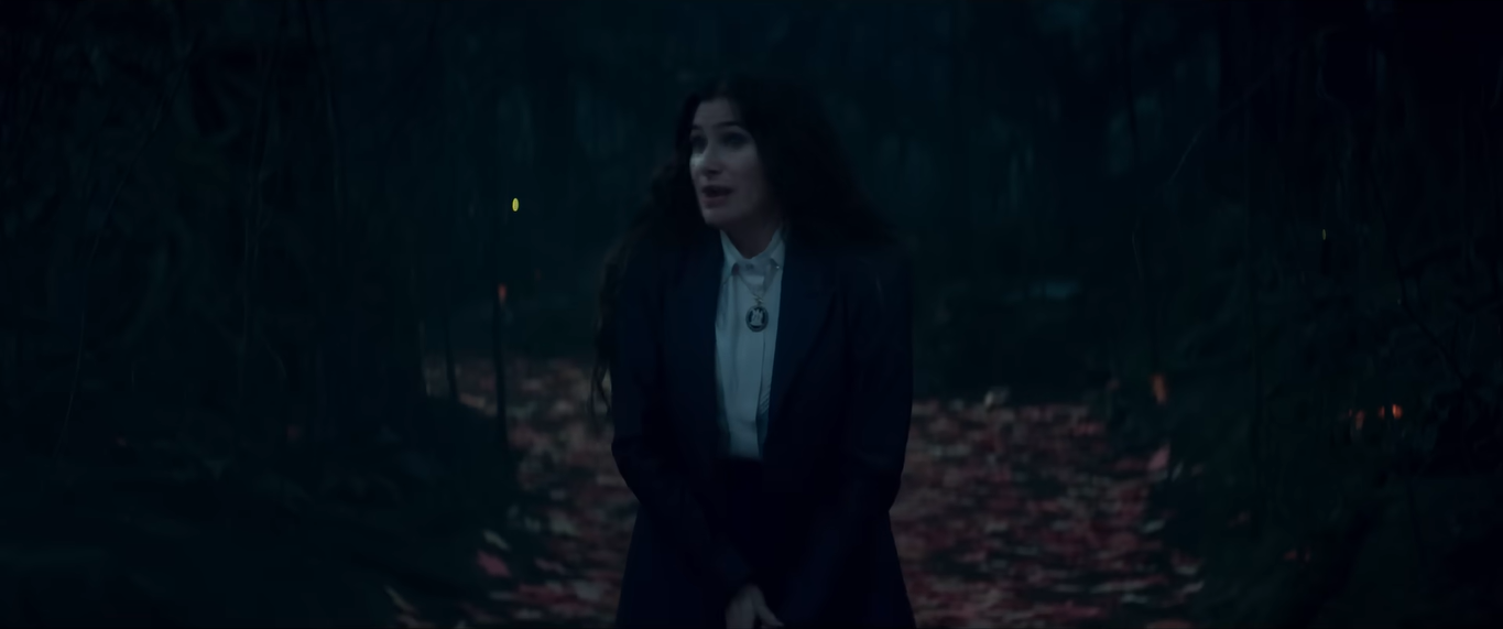 Harkness manages to drag her way out of the quicksand, covered in mud. She stands herself up and wipes mud off her face, turning to Teen, who she now realizes is Billy Maximoff. Meanwhile, Maximoff plays with his sigil in his hand and breaks it. Harkness approaches and compliments his reveal, taunting him for his lies.[29][5]