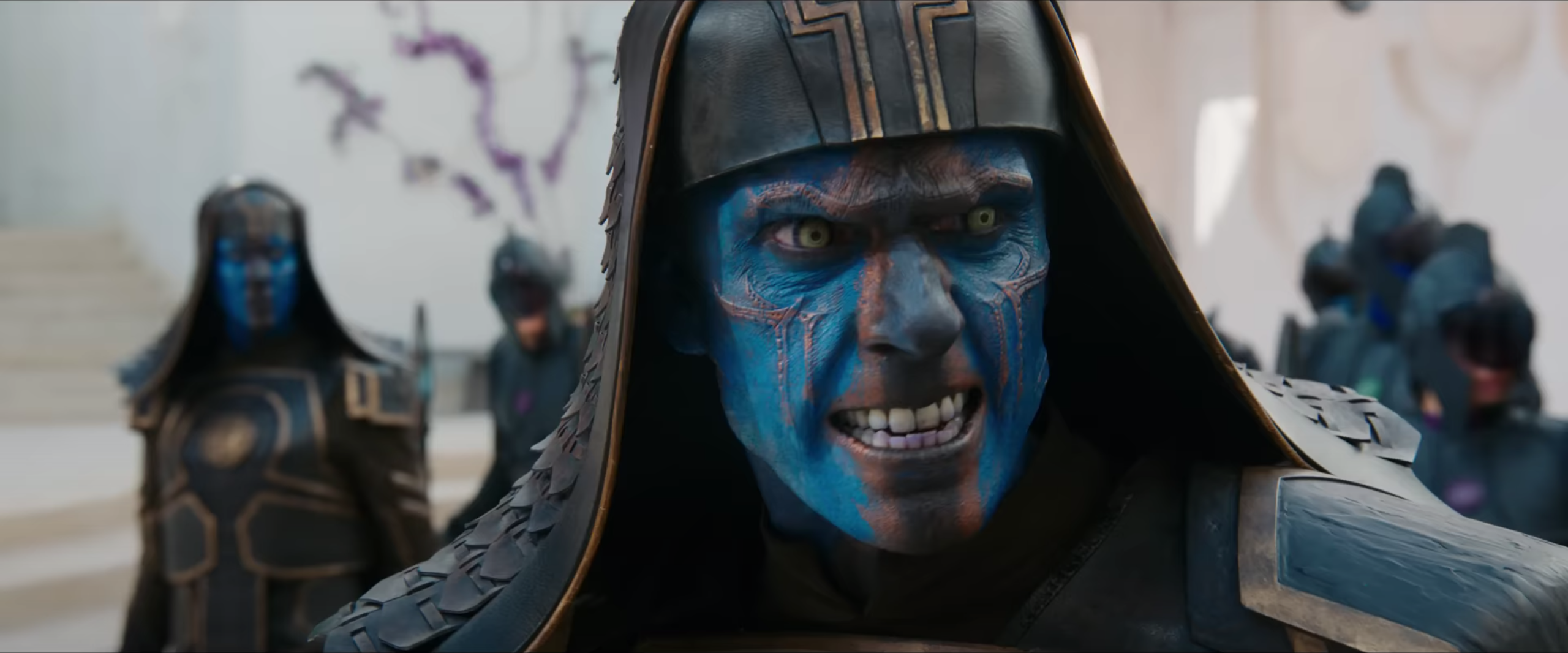 ↑In Resurrection, Talos explains G'iah's defection to the Skrull Resistance by saying "She was young. Angry that our people still don't have a home. Many of them are upset. I got kicked off the Council, pushed into exile," suggesting that this was part of the reason she defected and would have occurred before her defection. G'iah is shown in the episode to not have known about Soren's death, suggesting that Soren died after she left. Talos' exile, G'iah's defection, and Soren's death can therefore be distributed between the last time Soren is seen alive, the end credits of Spider-Man: Far From Home on July 4, 2024 (see 2024 references) and the start of the Resurrection, October 31, 2026 (see other references). This places Talos' exile on February 2, 2025, G'iah's defection on September 2, 2025, and Soren's death on April 3, 2026.