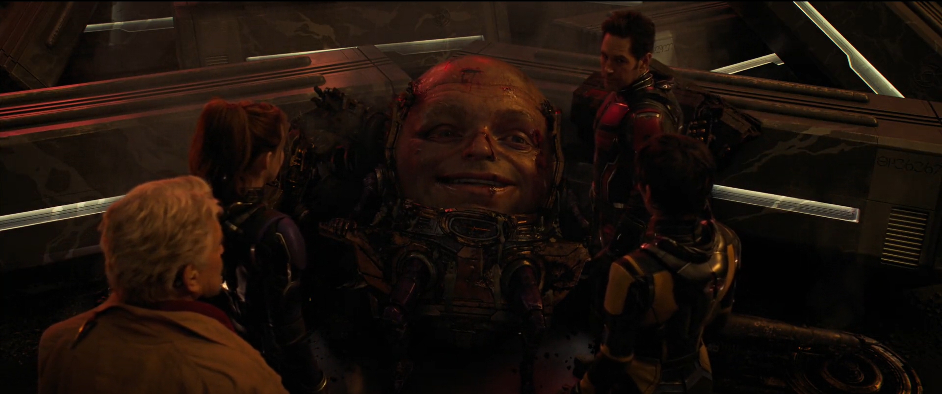 Scott looks at the Multiversal Engine Core, which Kang explains as Janet, Hope, and Pym approach it. M.O.D.O.K. tells Scott to shrink down and get inside. Scott asks what the core looks like, but Kang says he will know it when he sees it. M.O.D.O.K. warns Scott that his mind will come undone if he is inside too long, and Cassie apologizes, but Scott assures Cassie that it will be okay.[10][12]