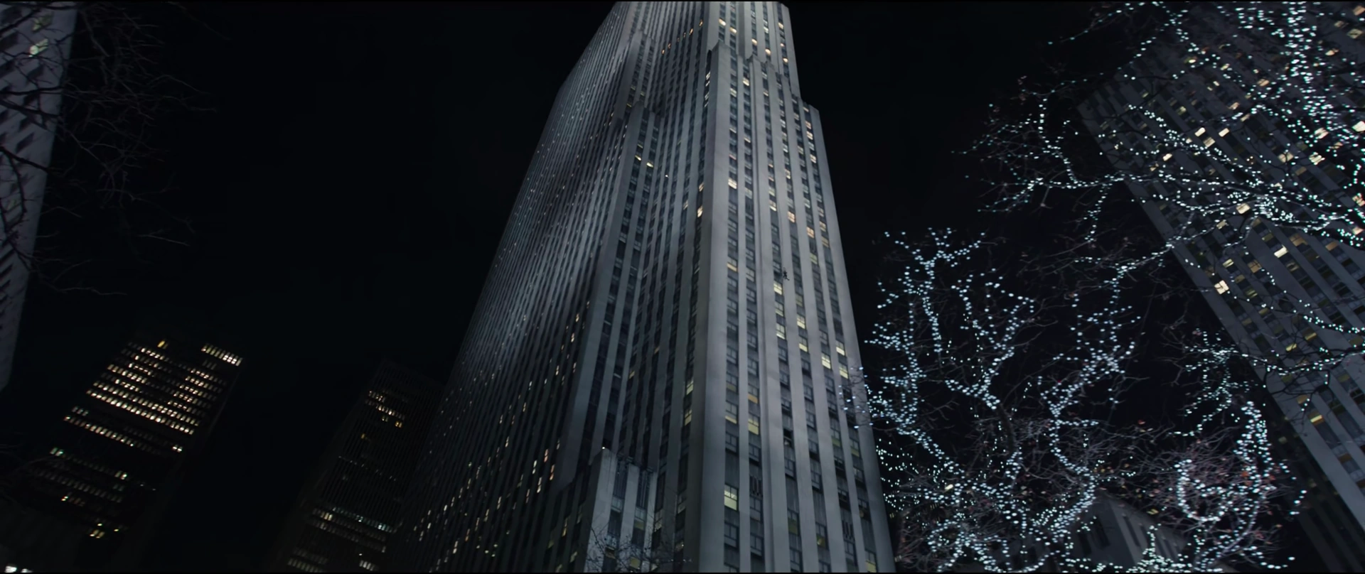 In December 2024, Peter Parker, wearing his new homemade Spider-Man Suit, swung past 30 Rockefeller Plaza on his way to fight crime.[3]