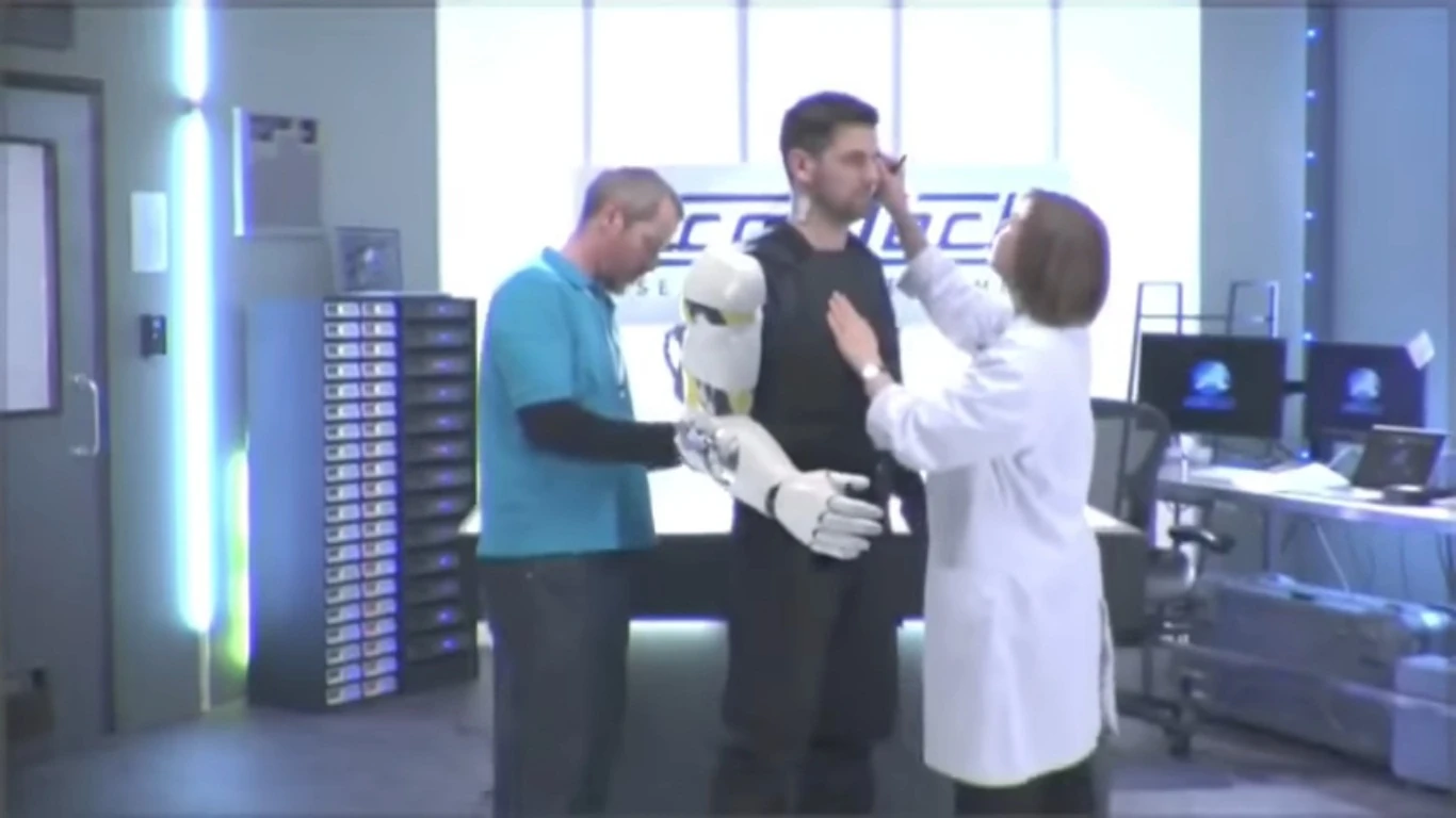 In preparation of Stark Expo, AccuTech filmed an advertisement in their headquarters for their HazTech Exoskeleton.[1]