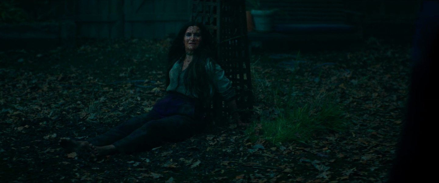 Maximoff attacked Harkness to release her hold on her children, before ordering them both inside of the Vision Residence to shield themselves. Attempting a second attack, Maximoff soon discovered that Harkness was able to not only absorb her chaos magic, but take a portion of her life force as well. Harkness attempted to strike a bargain with Maximoff: she would be able to maintain the Westview Anomaly, but she would have to give up the chaos powers.