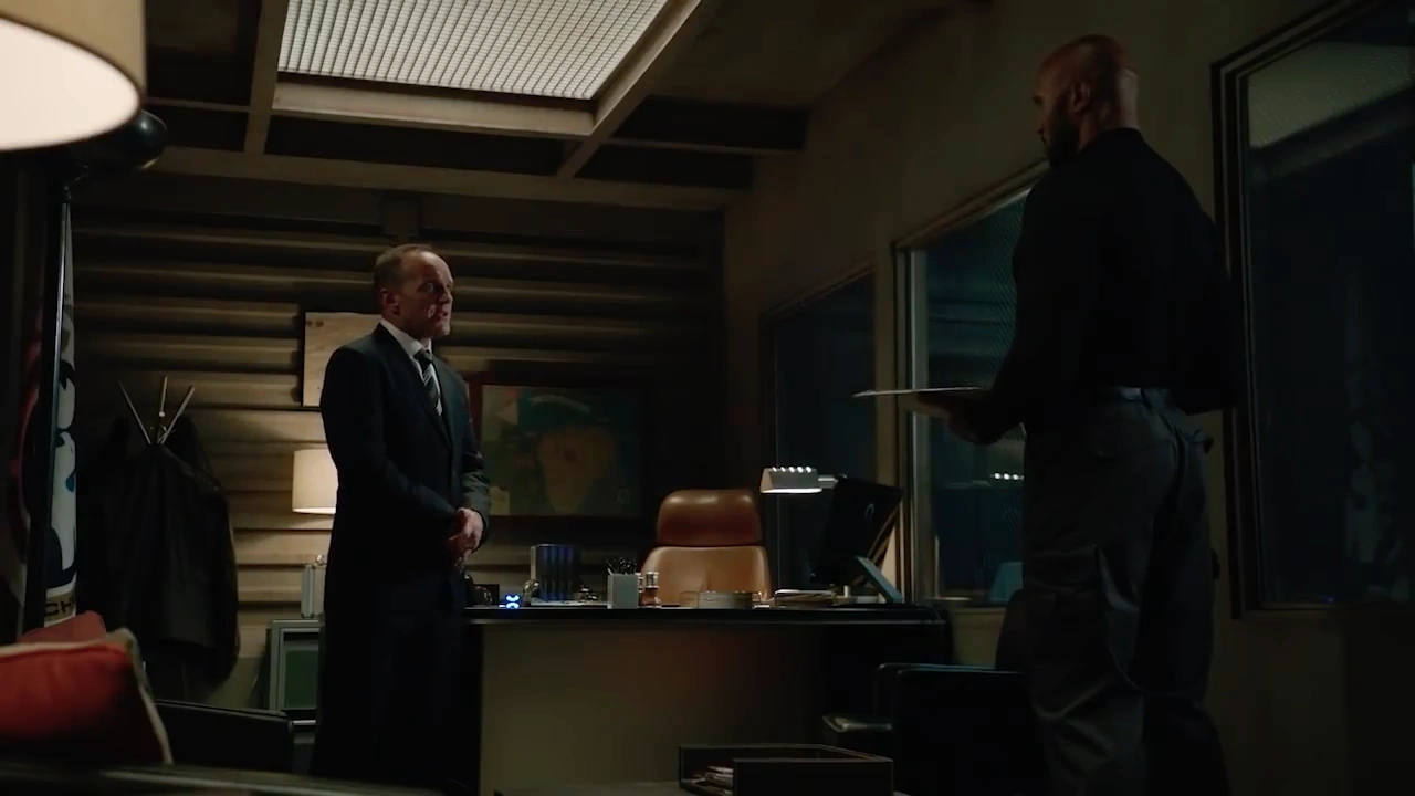 "Mack. How's your cover with Coulson?" "We're giving him updates once a day, painting in broad strokes. Heartbroken ex-husband, finding comfort in a bottle, that kind of thing." "It's time for you to get back, then."