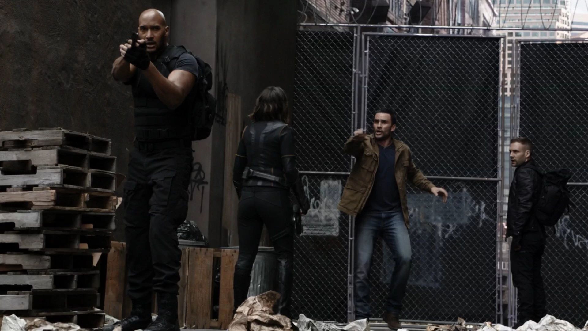 Mackenzie was one of the senior agents that were assembled when Director Coulson gave the new mission: to find the city that matched the Words of Creation before Hydra did. Mackenzie stood next to Antoine Triplett and remained unconfident of Coulson's leadership.[22] Later, as they watched Bobbi Morse interrogate the recently captured Sunil Bakshi in Vault D, Mackenzie and Lance Hunter discussed how a week earlier Mackenzie had to hold down the Director. Mackenzie made it clear that he felt that the director was out of his mind during the incident. Before they could discuss it further Jemma Simmons entered, interrupting the conversation.[23]