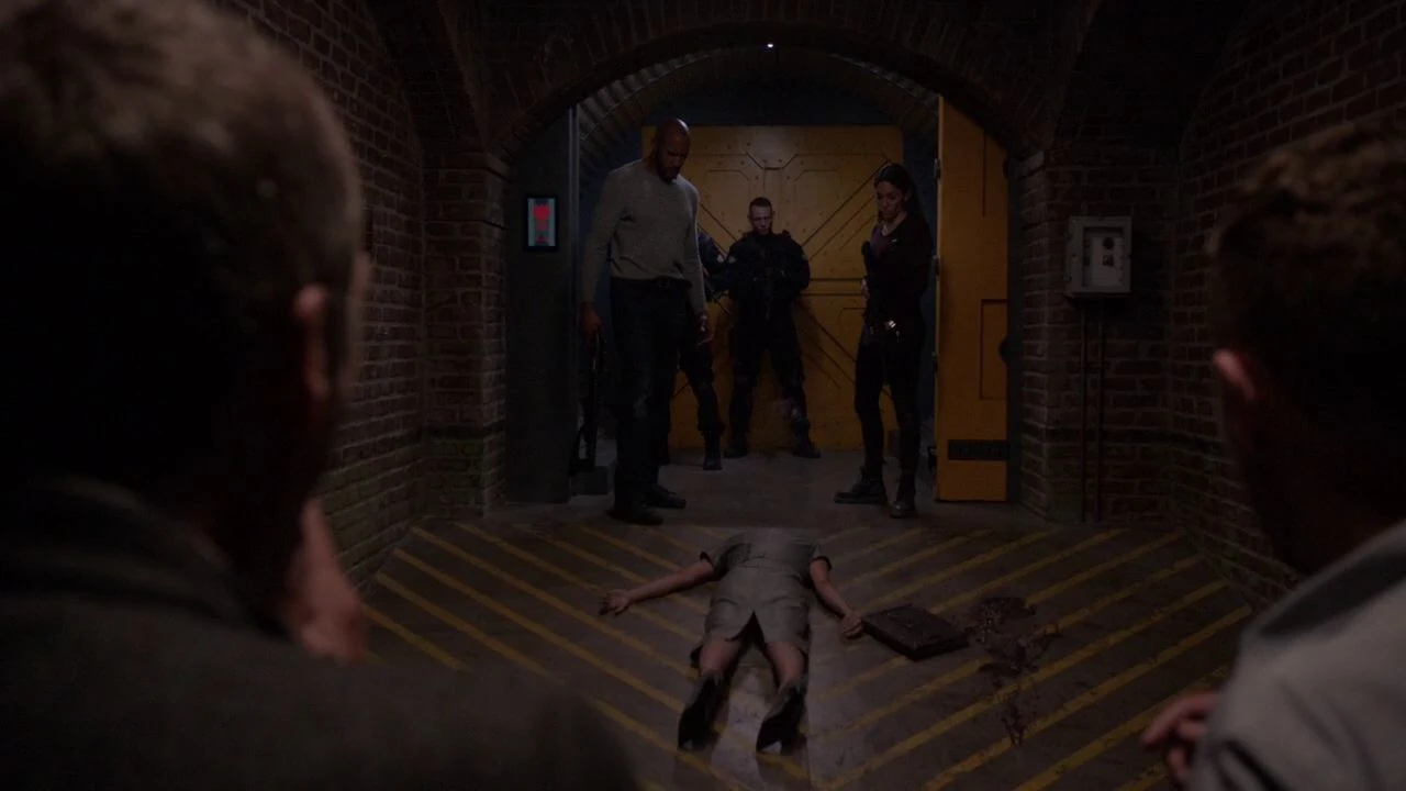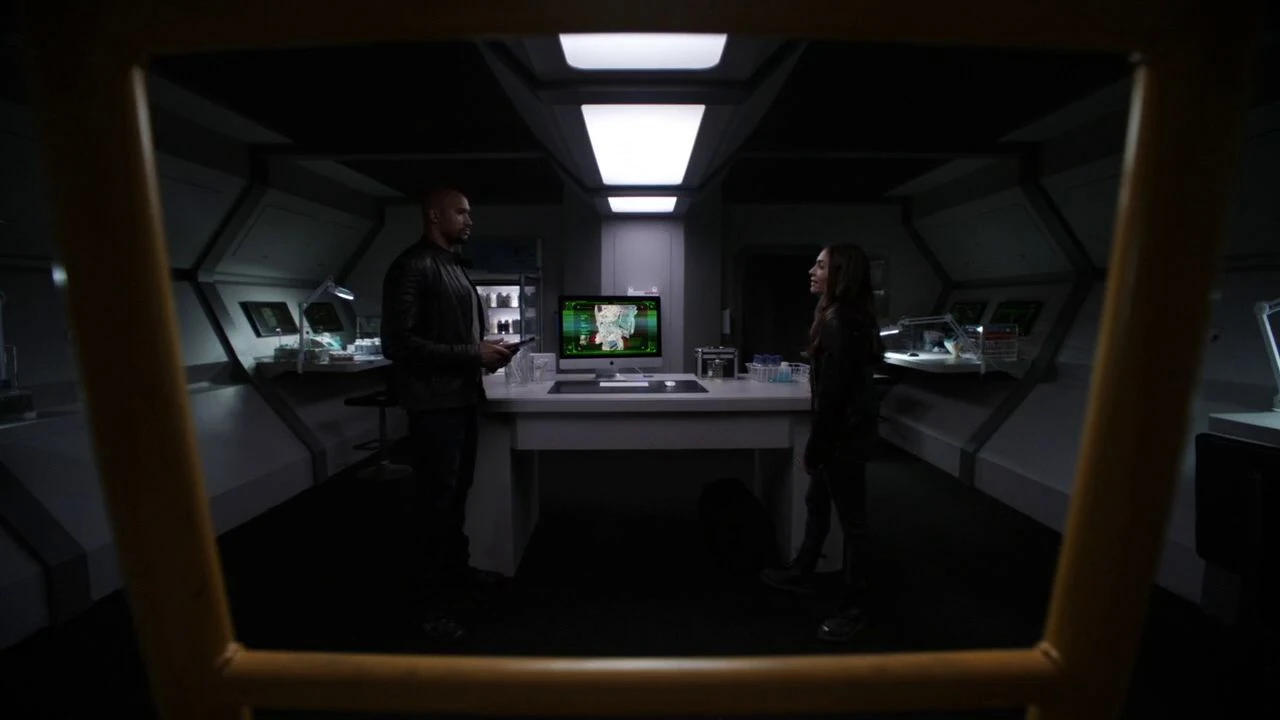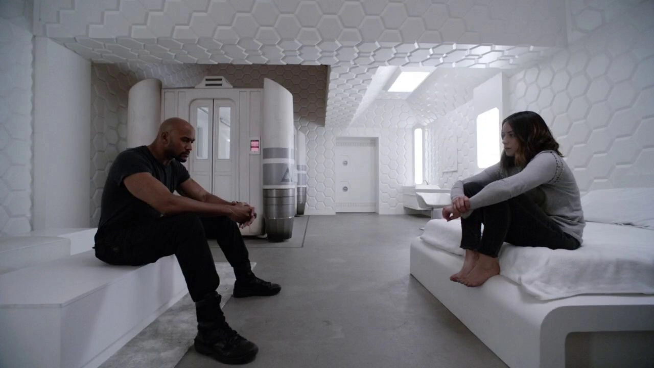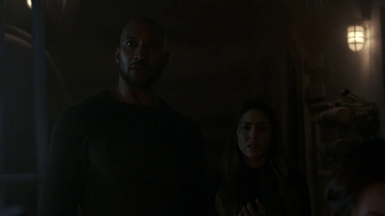 Mackenzie and Daisy Johnson spoke about recruiting Joey Gutierrez to the team of powered individuals she sought, but Mackenzie did not think he was fitting. She also said that Coulson's team would be soon with only three people as the rest were gone, left or injured. Bobbi Morse and Lance Hunter suddenly entered, rushing to the Monolith room where Leo Fitz opened the containment of the Monolith, and they managed to close the containment before it transformed to liquid form and then returned to solid form. Discovering sand grains from another world, gave them proof that Simmons was alive. Everyone agreed they have to find out what happened with Simmons.