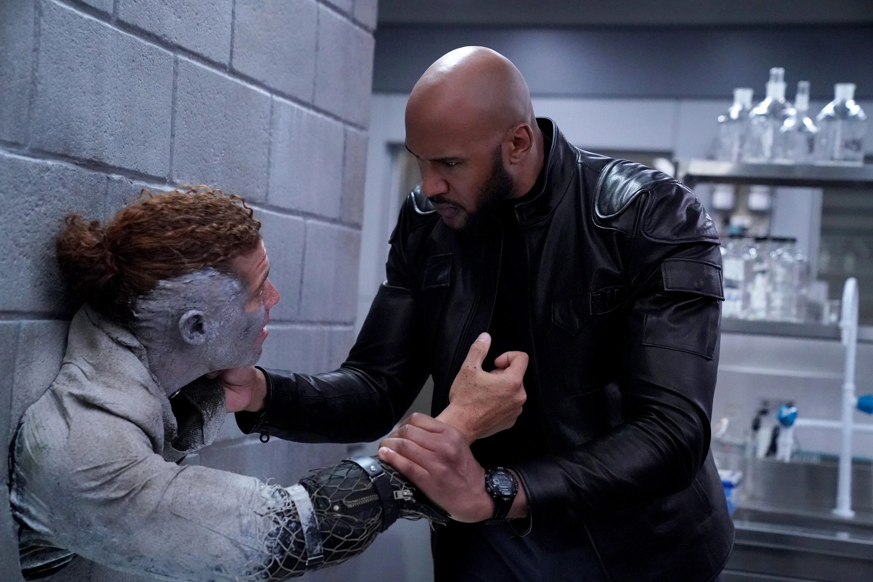 Master Combatant: Mackenzie is a skilled fighter, often sparring with Bobbi Morse to improve his fighting skills, with the latter being happy to finally have "an actual partner" and joked that he could bench-press a small hatchback.[30] Mackenzie's extraordinarily strong, able to drag a dense Kree corpse with one hand (when it took three people to drag another) as well as smash through a concrete pillar by slamming a Chronicom Hunter's head into it. He often uses this attribute as a weapon such as when he put Lance Hunter in a sleeper hold. His fighting style mixes martial arts movements like Boxing, Krav Maga and Wrestling. During his battles with Gordon and Lash, Mackenzie resorted to weapons against his foes. He knocked out Virgil with a single punch and even defeated the Odium-empowered Kasius in a duel with help from Jemma Simmons. Mackenzie was also able to withstand a fight against the mighty Pachakutiq, even striking him strongly enough to briefly disrupt the balance between the incorporeal entity and the body it was using.
