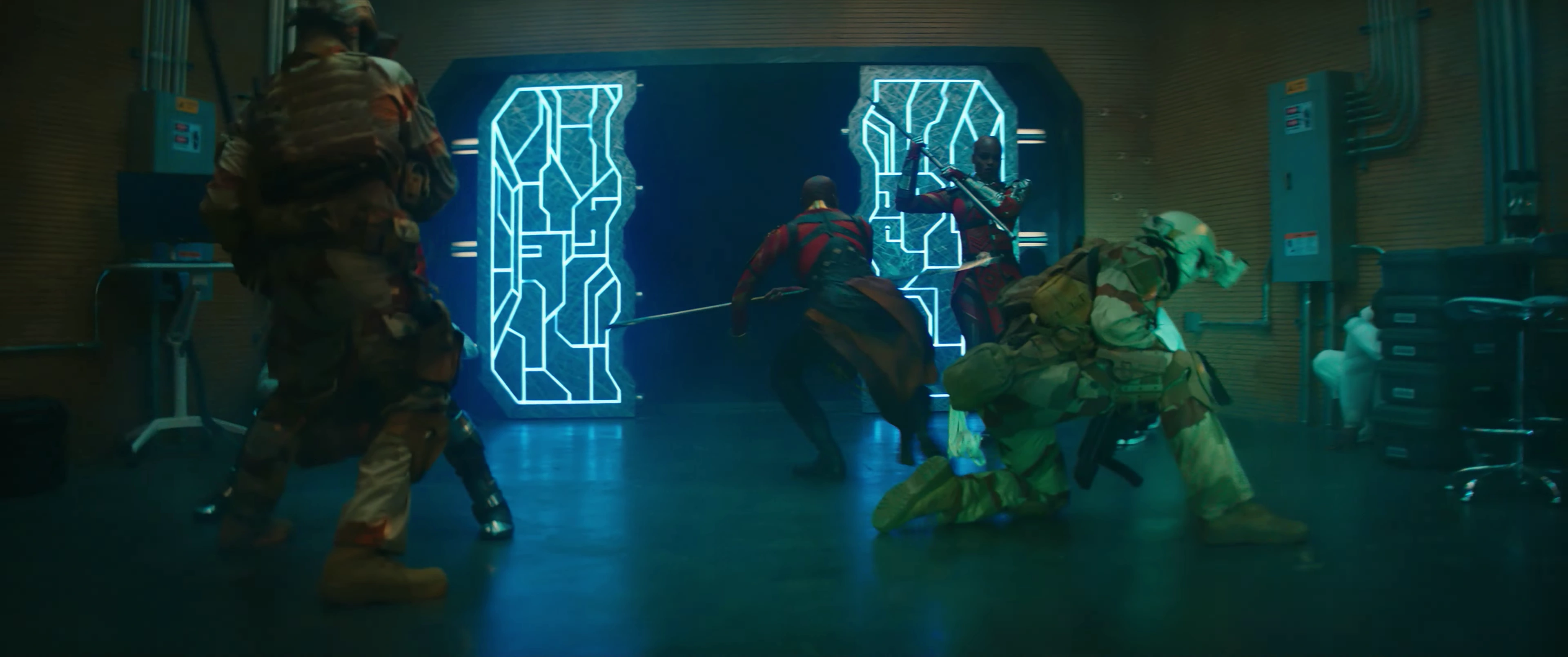 An employee of the Outreach Center noticed the CCTV cameras stopped working then the power went out, then all of a sudden, the door got breached by a group of French Armed Forces. They asked where the vibranium tools and who can access it, when they opened it, the Dora Milaje attacked and eventually captured them. [1]