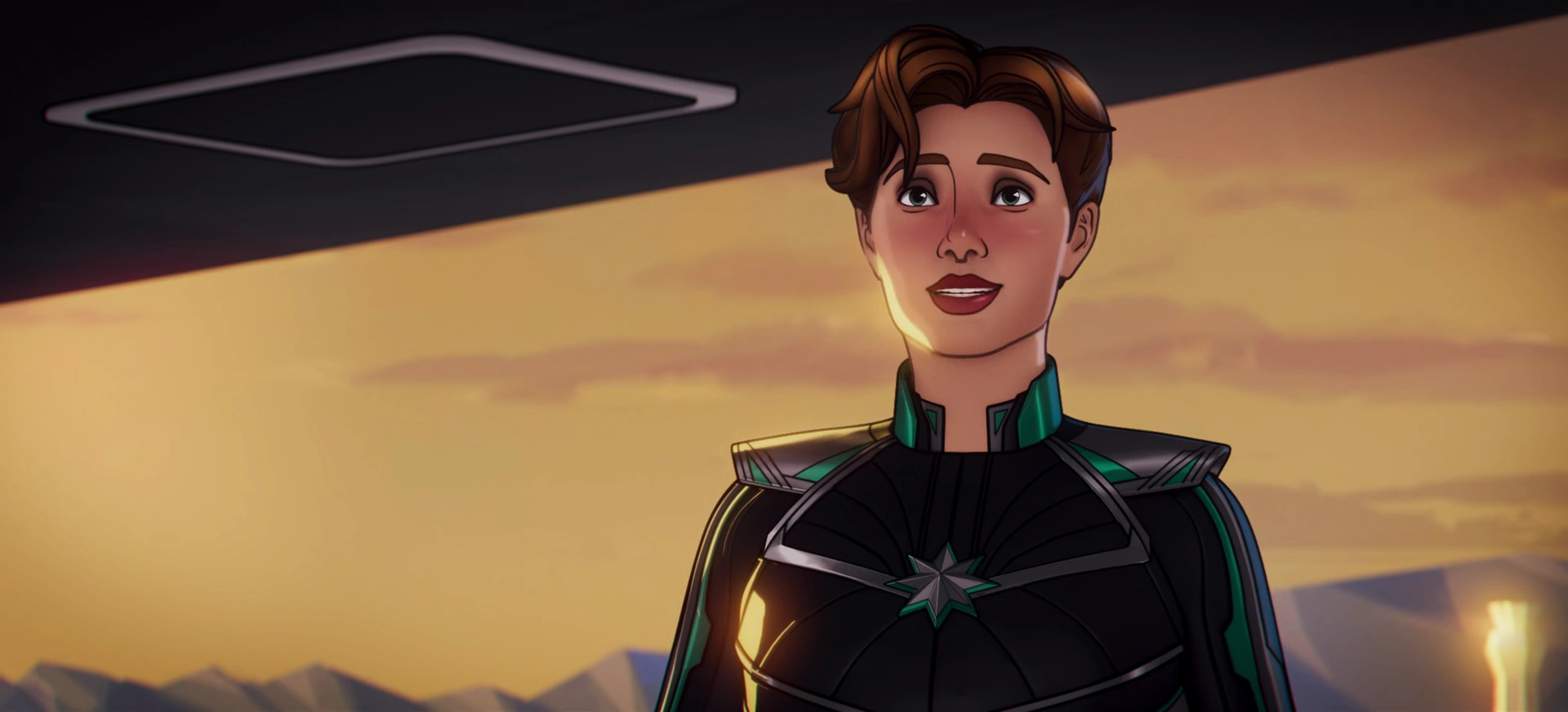 Carol Danvers and Yon-Rogg facing off at the wreckage of the Asis