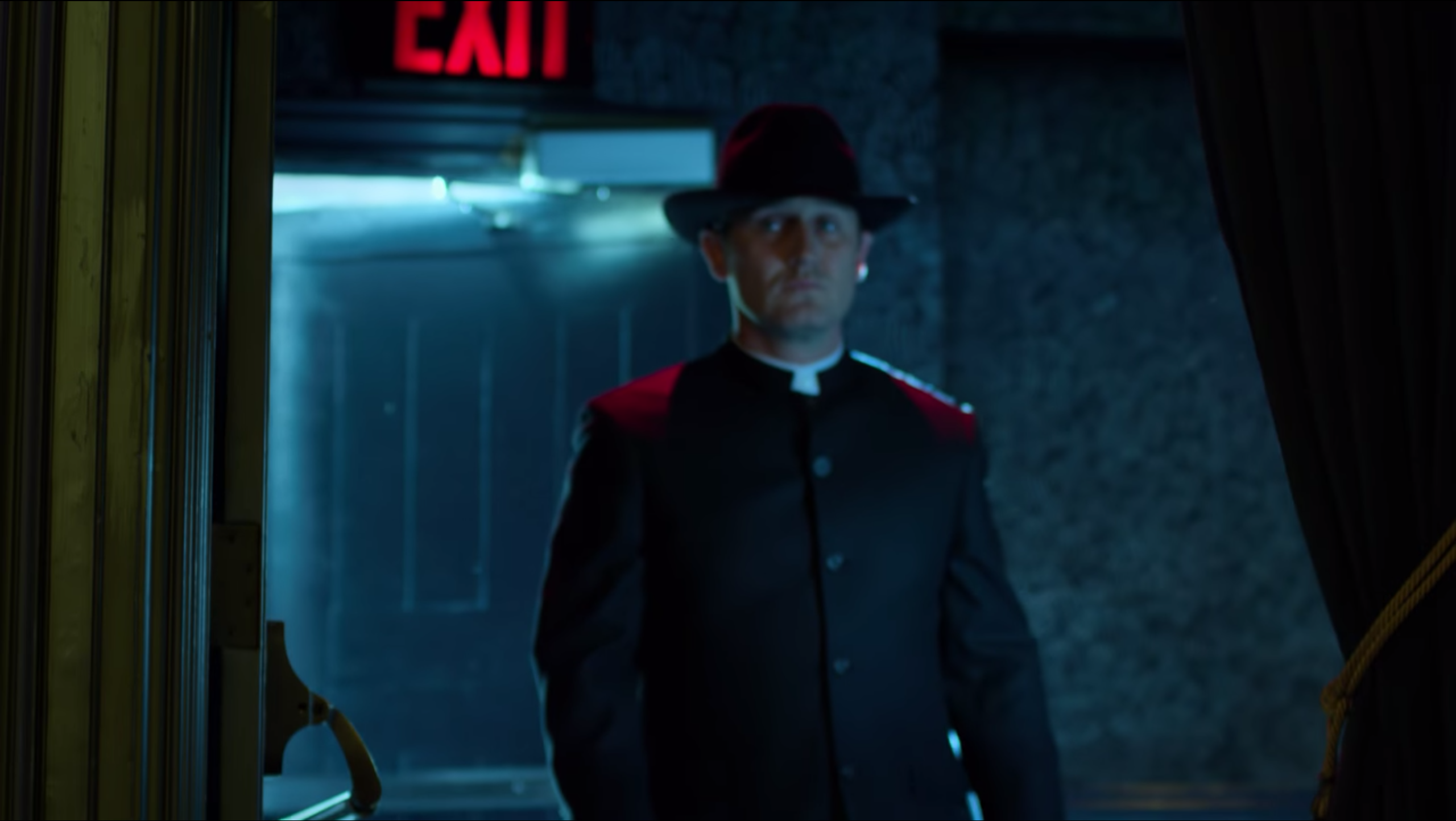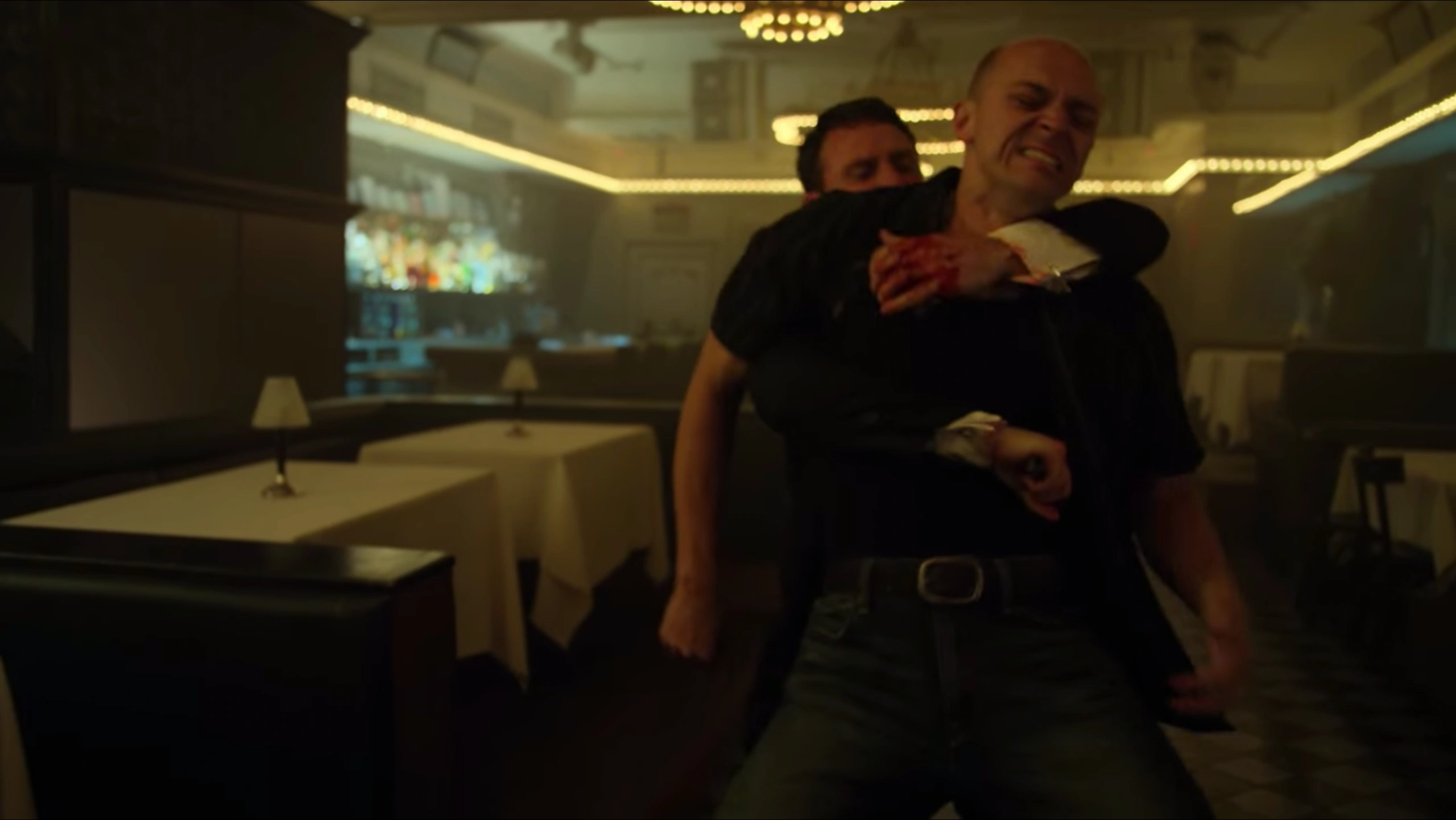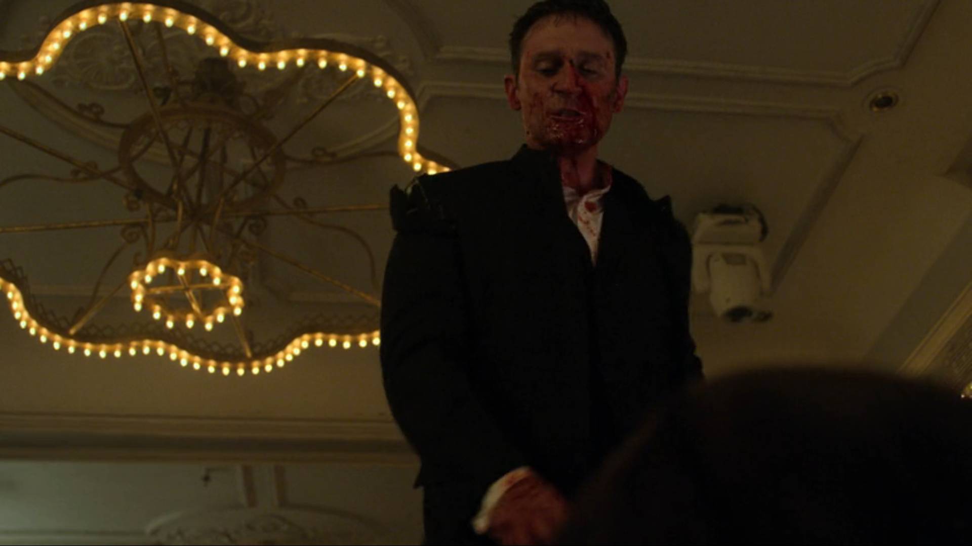Before Pilgrim almost stealing the brass knuckles, Kusack put him into a tight headlock and furiously attempted to strangle him. However, Pilgrim was then able to grab onto Kusack's thumb, breaking it, kicked him down onto the floor before picking up the brass knuckles from the floor. As Kusack was unable to defend himself, Pilgrim had then proceeded to brutally punch him in his face repeatedly until Kusack was finally dead. Pilgrim then looked around the room as Danny tried to escape, only for Pilgrim to pick up a gun and calmly shoot Danny twice in the back.