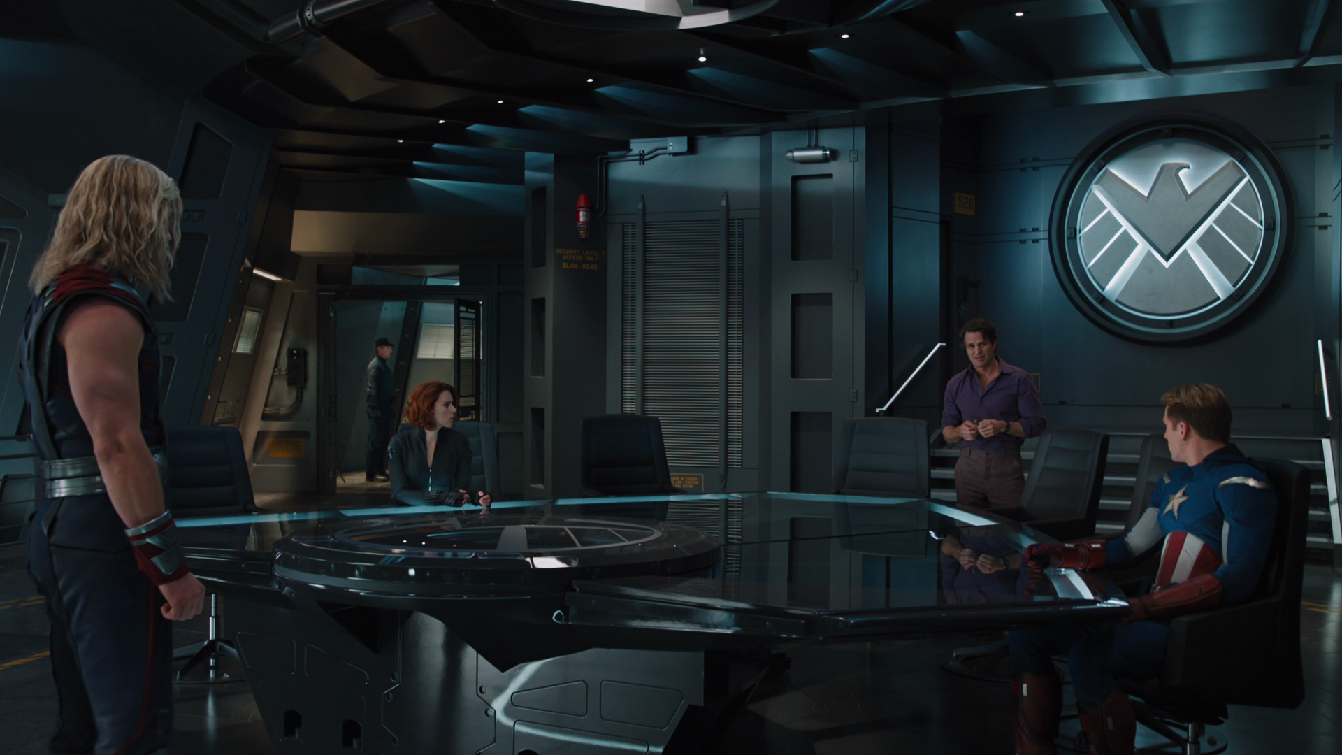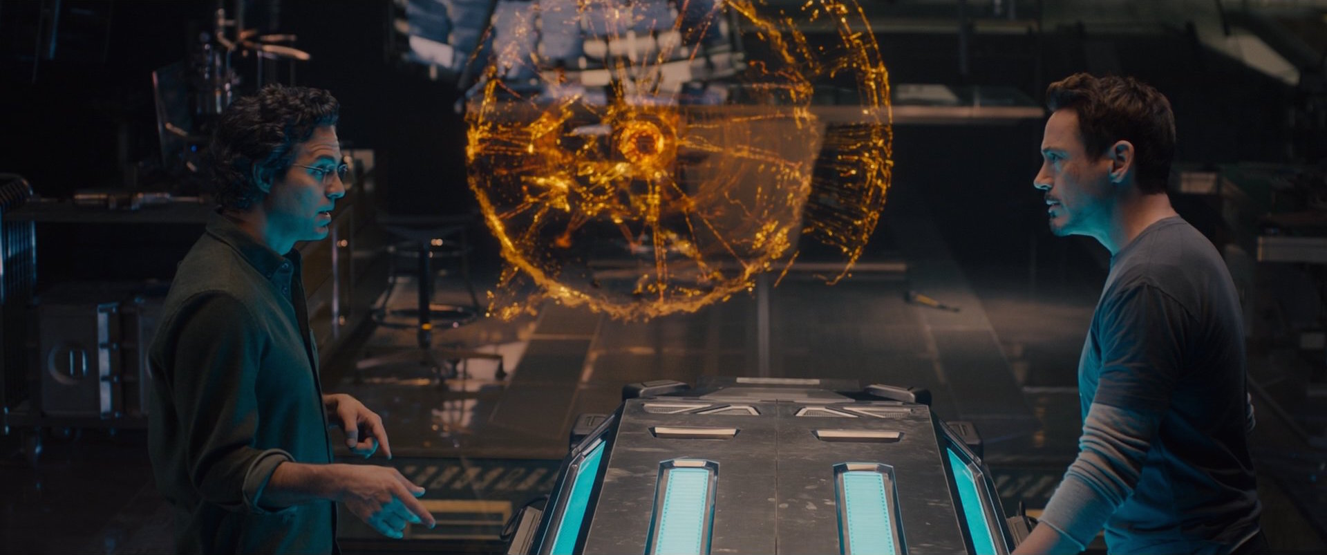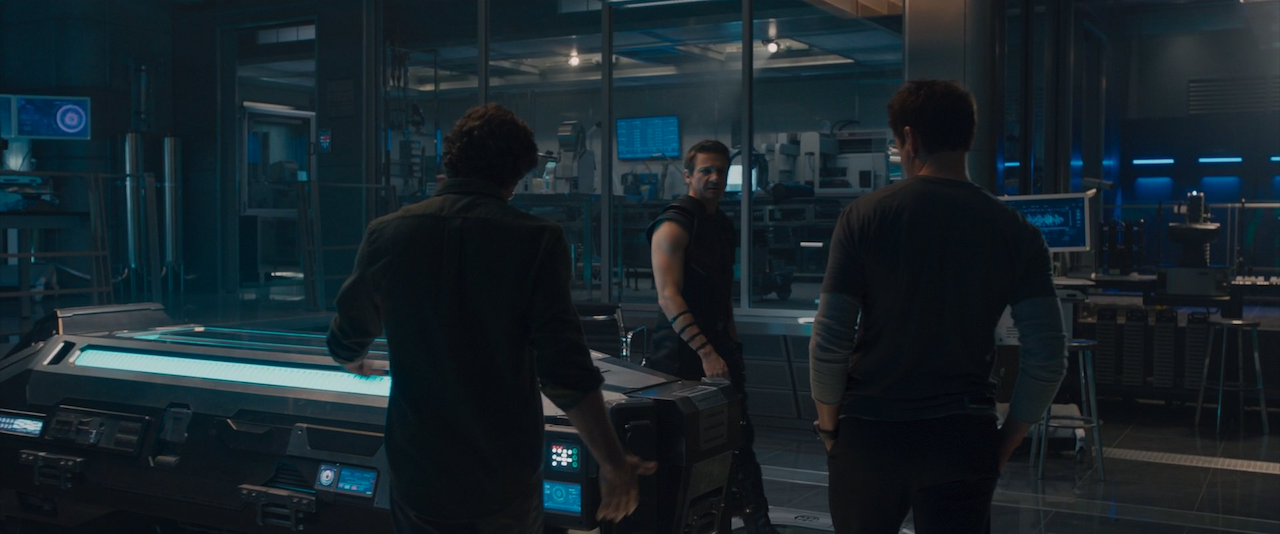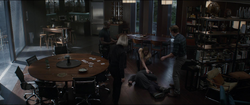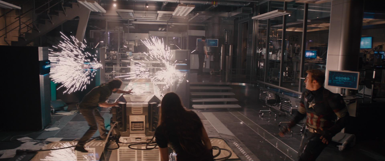 After Natasha Romanoff discovered Loki's plans to unleash Hulk, she and Thor headed to the lab to watch over him. Fury met with Stark and Banner in the lab, questioning Stark on why he was hacking S.H.I.E.L.D., and Stark asked about Phase 2. Rogers returned and revealed S.H.I.E.L.D. was intending to make weapons from the Tesseract. Romanoff and Thor then joined them, and they all began to argue over S.H.I.E.L.D.'s secrets as well as with each other.[8]